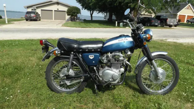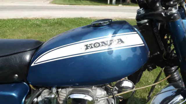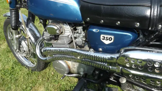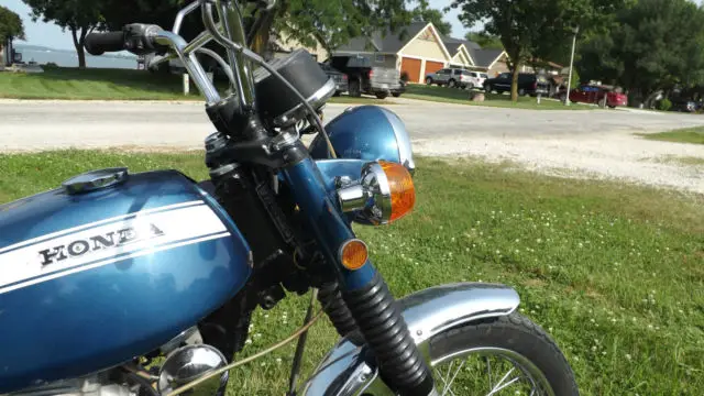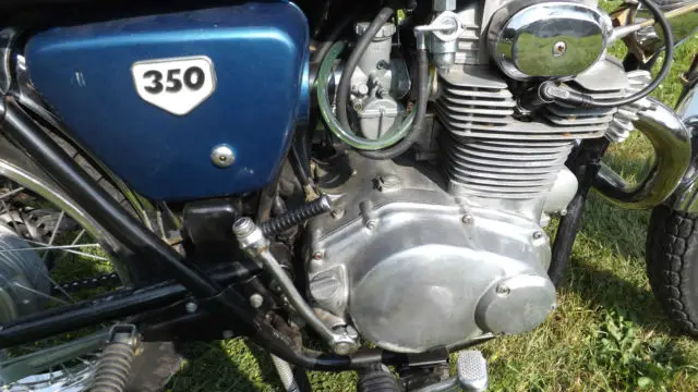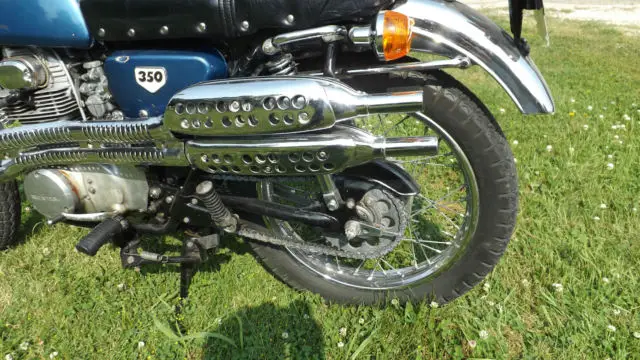 replaced the crapped out cv carbs with period correct mechanical slide carbs from a Honda sl350 motosport along with new cables and NOS k&n filters. also I retimed the bike and replaced the oil and spark plugs. ( this gave the bike much snappier bottom end power and it starts right off now no mater how long it sits.) I believe it would be wise to adjust the timing chain and valves yet though I have not had time to do it..Also the float level needs to be tweaked a little bit if you park the bike and leave the fuel valve on the carbs leak gas out the overflow tubes. paint is original and decent really no rust at to speak of on the chassis. you can tell the wiring harness has been cobbled up a little bit but everything works except the speedo and tach lights.. Happy bidding and good luck. I been much more honest describing the bike to you than it was described to me..Starting bid is the reserve so as soon as there is a bid it has a new owner..also have some extras if your interested.( the old carbs notput together and a second exhaust system if you want to build a custom exhaust and not cut up your good pipes)