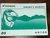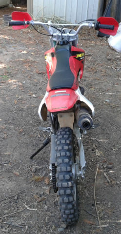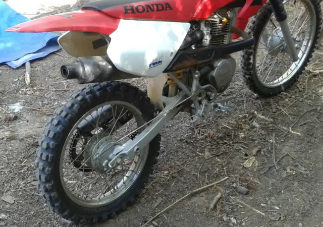 - dirt bike/cross/motocross for sale- 2003 Honda XR 100R- good condition- runs great- only one owner- only has about 40 hours on it- annual CA DMV fee is $52- clean title- engine: single cylinder, our-stroke- displacement: 99.20 ccm (6.05 cubic inches)- bore and stroke: 53.0 x 45.0 mm (2.1 x 1.8 inches)- gear box: 5-speed- transmission type, inal drive: chain- front & rear brakes: Expanding brake (drum brake)- dry weight: 75.0 kg (165.3 pounds)- seat height: 775 mm (30.5 inches)- overall length: 1,899 mm (74.8 inches)- overall width: 816 mm (32.1 inches)- fuel capacity: 5.60 litres (1.48 gallons)