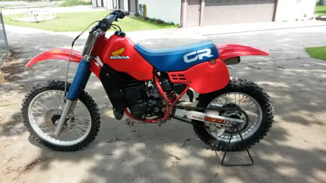 This is a one year only 1984 Honda CR500. It is ready to race. The starting drill is simple: lay it over and wait for fuel to leak out of the overflow, tand it up and kick it like you mean it. The first owner was a Honda 2 Stroke fanatic. Total motor rebuild with less than 2 tanks of fuel since burned since rebuild. Re-builder added a few things to tame this beast. Thicker head gasket and spacer between the carb and the Boyesen Reed cage.
