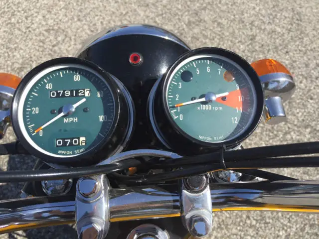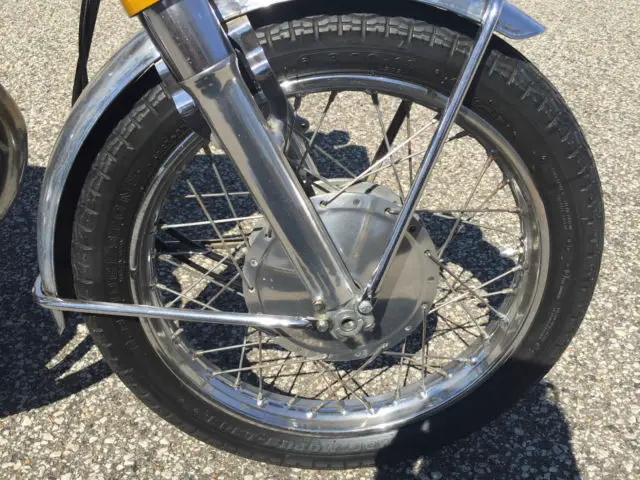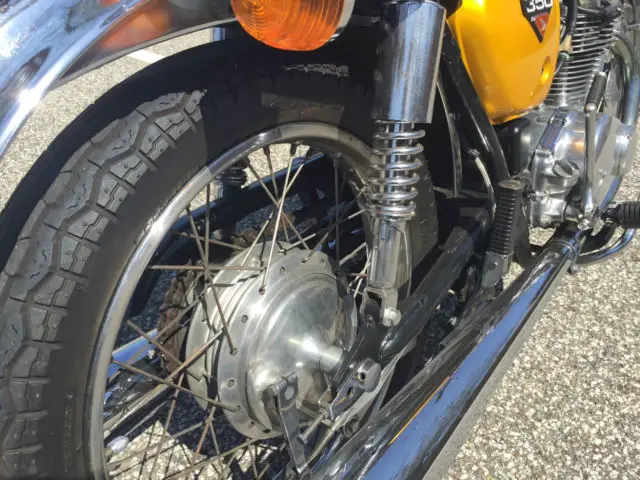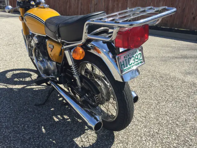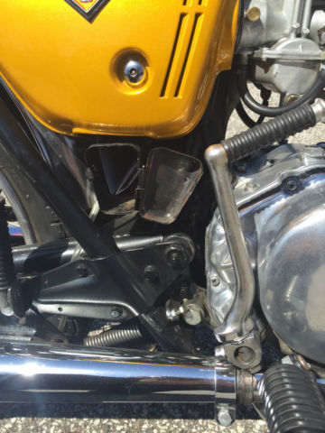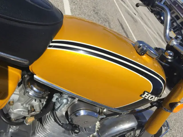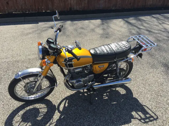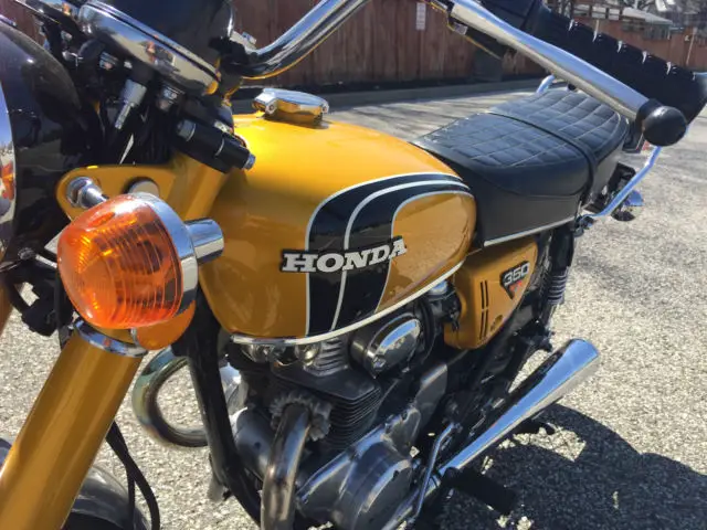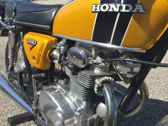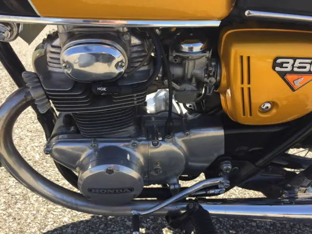 For sale is one immaculately kept 1972 Honda CB350. This bike is one of thenicest thatyou'll see around, f not the best. It is in pristine condition, aving only 7913 original miles as of the time of this posting. Everything is original on this motorcycle with the exception of the exhaust pipes. The gold paint has been factory matched and painted professionally. The paint is absolutely flawless...the pictures will tell the whole story. Thisbike also has electric start along withthe kick start. She runs beautifully - I had the carbs redone and cleaned recently along with the points. I had a new battery installed and the tires are in great shape. Original seat without a scratch on it. Polished aluminum parts and no rust. 4 total owners and babied every step of the way. The bike is registered and titled cleanly to myself in KY. Youwon't find another around in this condition, o buy her while you can...