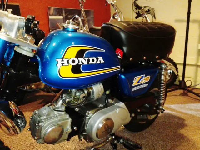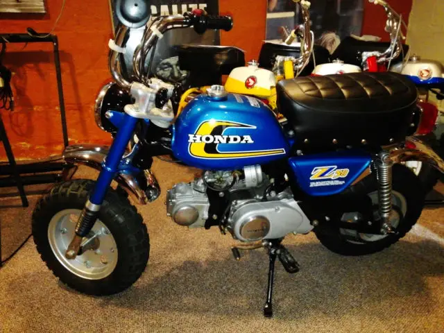 For sale is this incredible little Z50 mini-trail. This bike was torn completely apart and rebuilt from scratch! Everything on it except the muffler guard was replaced with new or OEM Honda parts. The Sapphire Blue Metallic paint is also flawless and shines like new! The bike only has about two break-in miles from doing laps around my back yard to make sure everything works, ts flawless. Nothing more to say except that it has spent its days since being restored, n my basement along with my music gear and my other rare collectibles. I am only selling this so I can go after another slantguard.