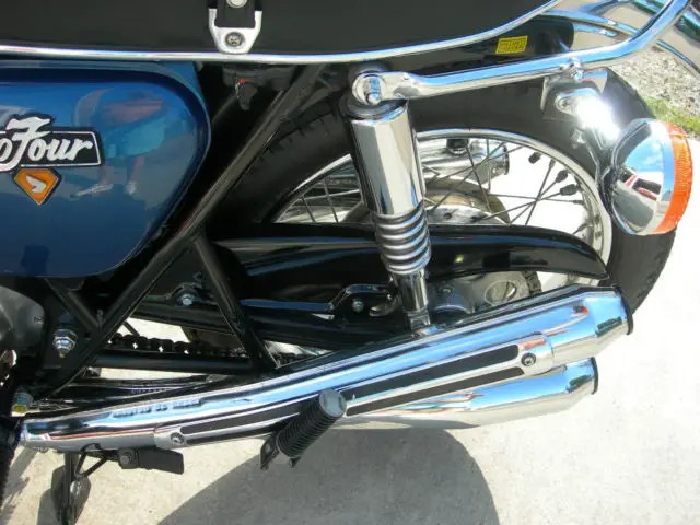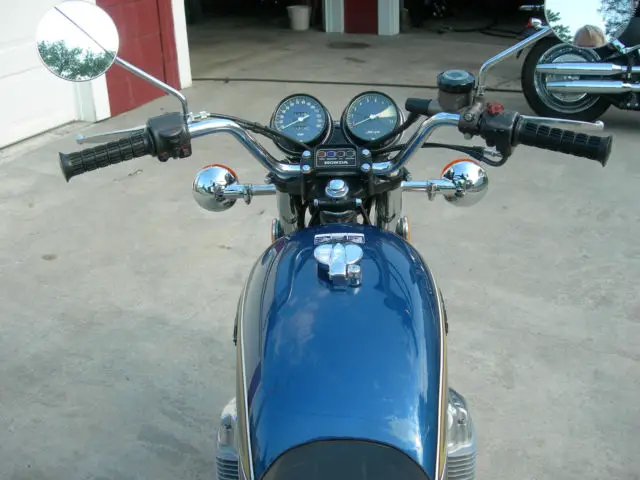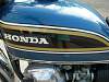 I had the bike professionally painted the original planet blue in base clear and we used new decals from Reproduction decals. The pipes are NOS Honda HM341 purchased back when you could get them. The seat, ront fender, as tank trim moldings, rips, evers, nd theexhaust collars are all new NOS Honda.