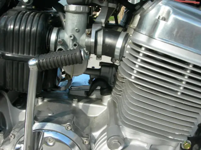 The battery is an AGM that is about 2 years old, he tires were replaced with Dunlop K70 Gold Seals along with the tubes and rim strips. The sprockets and chain were replaced with a 530 O- ring set up. Mike Nixon rebuilt the original carbs thissummer and the bike runs excellent. You can go on his site, he Motorcycle Project, nd see what work he performs on these carbs.