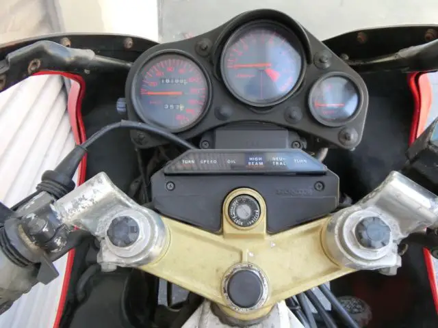 Con: Lost gas tank, ir cleaner box. Lost left mirror.Needs thermostat gasket, ome metric bolts & nuts. No lower cowls, r kickstand cowl. Rear brake needs work. No key.?Grips are torn. Has some typical old bike pitting on the fork tubes and alloy parts.