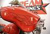 THERE ARE NO DENTS OR DINGS THAT I CAN FIND, OWEVER THERE ARE TOUCH UPS THROUGHOUT THE PAINT ON THE BIKE. THE CHROME AND ALUMINUM ARE IN GOOD CONDITION. THE TIRES HAVE GOOD TREAD LEFT ON THEM.