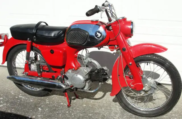 This is a 1964 Honda C200 90cc motorcycle. It is relatively rare in that the Honda C200 was only built from 1963 to 1966. It is a nice little motorcycle that weights about 120 pounds or so. When new, t was advertised to get 175 miles per gallon at 30 mph and 112 miles per gallon at 40 miles per hour. I am not sure of the top speed but I believe it is about 50-55 mph.