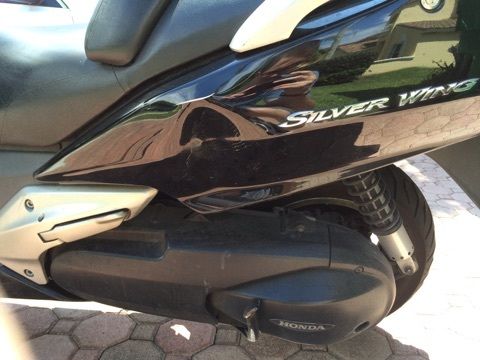 Photos include the scratches/dents of the bike. Its functioning has not been affected; the damage is cosmetic. It's available for local pickup so if you'd like to see/test drive. something can definitely be arranged. Any questions at all. don't hesitate to contact me. http://www. bikez. com/motorcycles/honda_silver_wing_2002. php Model:Honda Silver WingYear:2002Category:ScooterRating:64. 4 out of 100. Show full rating and compare with other bikesEngine and transmissionDisplacement:582. 00 ccm (35. 51 cubic inches)Engine type:Twin. four-strokePower:50. 70 HP (37. 0 kW)) @ 7000 RPMTorque:54. 00 Nm (5. 5 kgf-m or 39. 8 ft. lbs) @ 5500 RPMCompression:10. 2:1Bore x stroke:72. 0 x 71. 5 mm (2. 8 x 2. 8 inches)Fuel system:InjectionGearbox:AutomaticChassis. suspension. brakes and wheelsFront suspensiontravel:120 mm (4. 7 inches)Rear suspension travel:120 mm (4. 7 inches)Front tyre dimensions:120/80-14M/C 58SRear tyre dimensions:150/70-13M/C 64SFront brakes:Single discFront brakes diameter:256 mm (10. 1 inches)Rear brakes:Single discRear brakes diameter:240 mm (9. 4 inches)Physical measures and capacitiesDry weight:218. 0 kg (480. 6 pounds)Power/weight ratio:0. 2326 HP/kgSeat height:740 mm (29. 1 inches) If adjustable. lowest setting. Overall height:1. 30 mm (56. 3 inches)Overall length:2. 75 mm (89. 6 inches)Overall width:770 mm (30. 3 inches)Ground clearance:140 mm (5. 5 inches)Wheelbase:1. 95 mm (62. 8 inches)Fuel capacity:16. 00 litres (4. 23 gallons)Reserve fuel capacity:3. 50 litres (0. 92 gallons)