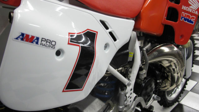 This bike was dismantled to the frame by Kaplan Cycles and built from the ground up to exacting specifications and build quality to be worthy of display in the New England Motorcycle Museum. Complete frame up restoration on a low hour original bike. The 1990 CR125 is notorious for having one of the FASTEST CR125 engine ever in one of the best handling frames! This bike is still competitive with 2015 models in the hands of the right rider, n fact I tested it side by side with our 2013 YZ125 and it held its ground and that was before the engine rebuild! Every inch of this bike has been painted and restored except for the original wheel sets which still look good. List of some of the work performed: New Dunlop MX52 Front tire and Heavy duty tube New Dunlop MX52 Rear tire and Heavy duty tube New crossbar pad and Renthal bars New custom Honda HRC graphics kit and #1 package and Swing arm graphics New Front Fender New Radiator Shrouds New Side covers New rear fender New seat cover / #NOTE THE SEAT BASE PLASTIC HAS A CRACK IN IT WHICH IS BEING SOLD AS IS A REPLAEMENT SEAT BASE IS $50- $75 New fork guards New Grips New custom number plate graphics New Clutch and Break levers Completely rebuilt engine Top end;New top end; piston, ings, askets, op end bearings, in and circlips