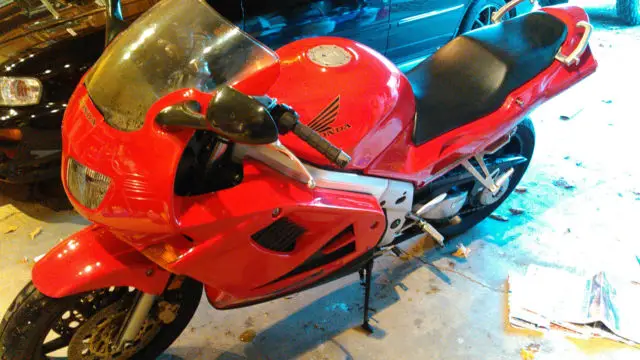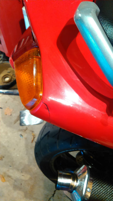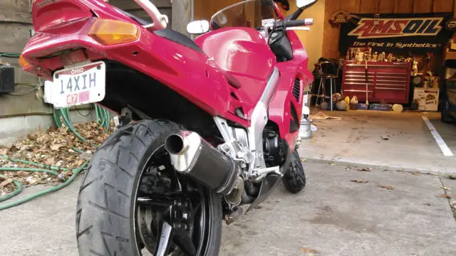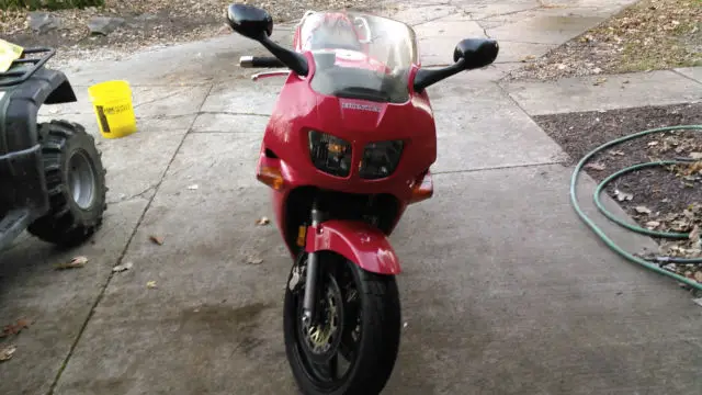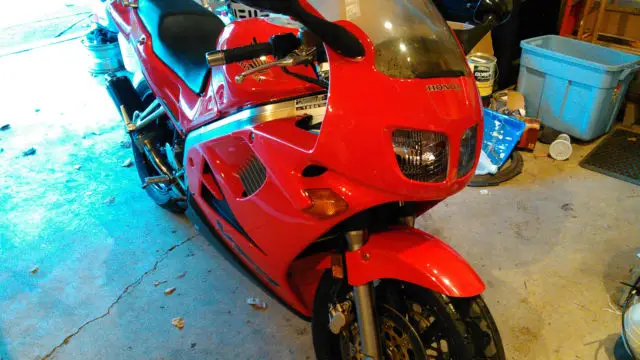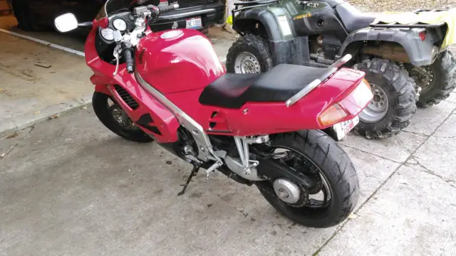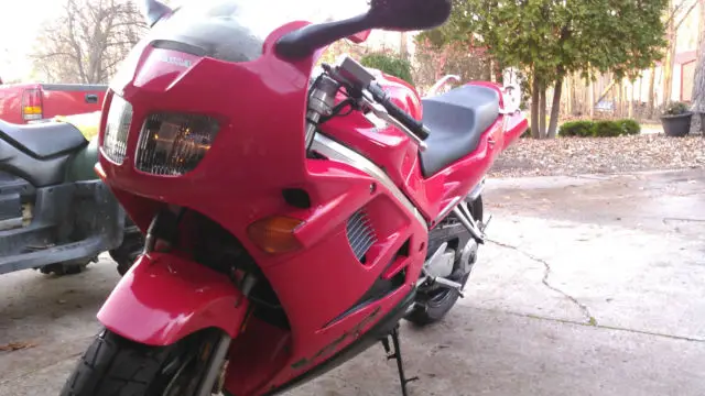 1994 vfr750f light scuffs on front fairing ( customer leaned on bike with large belt buckle) one crack on rear fairing Single sided aluminum swingarm aluminum frame new shinko touring tires no tears in seat new battery AGM 33500 miles Delvonic Carbon Fiber tri-oval exhaust starts and runs perfectly CHEAP ON INSURANCE great on fuel. over 44mpg SEE PHOTOS for scratches