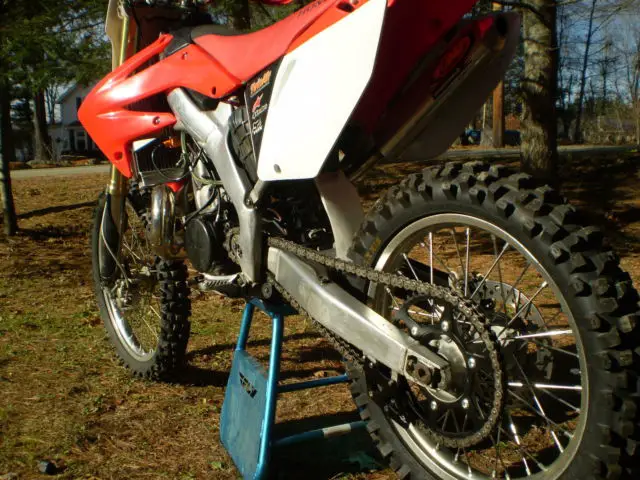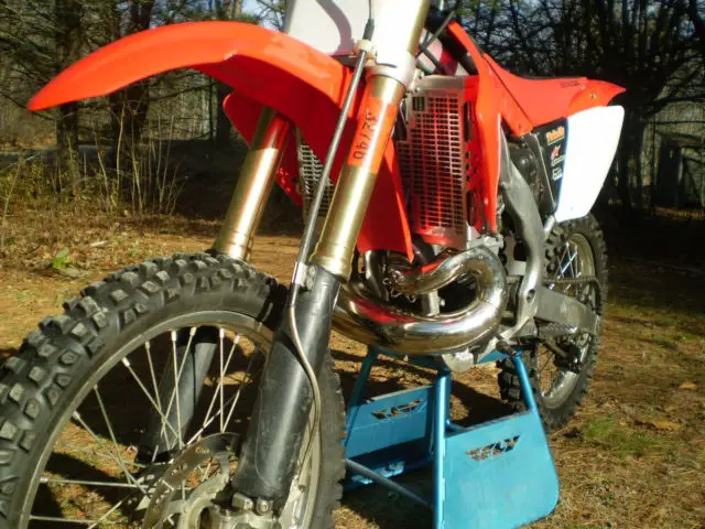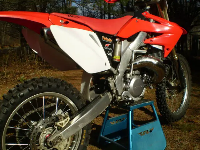 This bike began life as a 2004 CR 250 4 stroke. A CR 500 frame conversion kit was purchased and professionally installed. The Honda CR 500 2 stroke engine wascompletely rebuilt by a Honda dealer, eynolds Motorsports in Buxton Maine. Bored .020 with new piston. It has a new Barnett clutch basket, prings and clutch plates .New radiators with guards. New FMF pipe and silencer. Carb was sonic cleaned and all jetting and settings were returned to stock by dealer. New wheel berings.New brake pads. New clutch and brake cables. New hand guards. New bodywork. New chain and sprockets. Lots of other new parts.I took this bike in trade towards my truck, rom my friend who built this bike. He only test drove it on his dirt road. So less than 2 miles on the build. I have nevereven started it.This bike is not for beginners. It is a new build and may still have some things that need adjustment, uch as the carb.Shipping is the responsibillity of the buyer but I will help as much as can. Vin # in listing is not correct.