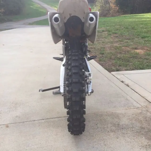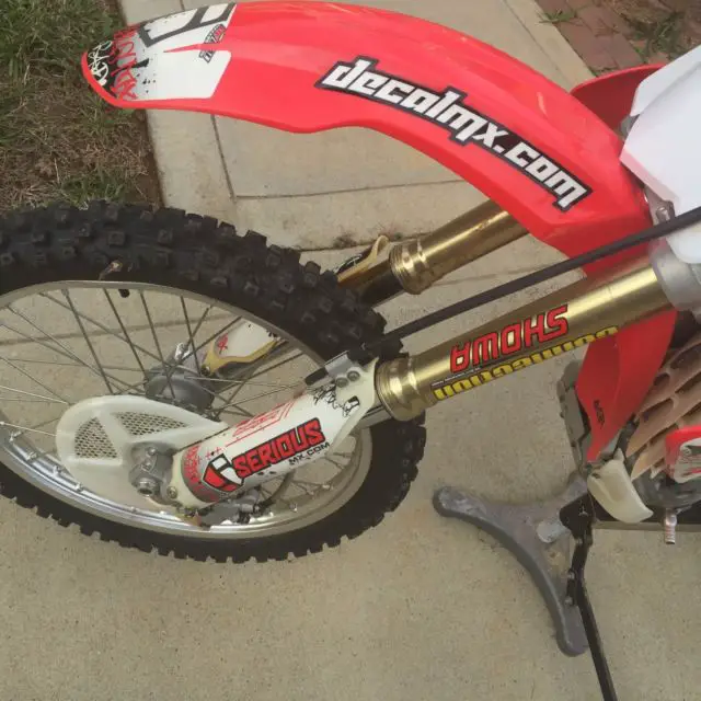 This bike is in "as-new condition"The bike was purchased 5 years ago for my wife to ride, he has road it 4 times.It came with updated suspension at the time of purchase. Still has original tires. Plastics are in excellent condition.