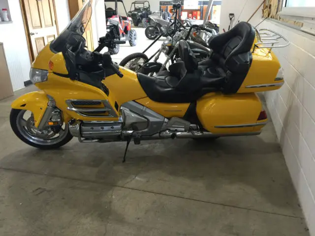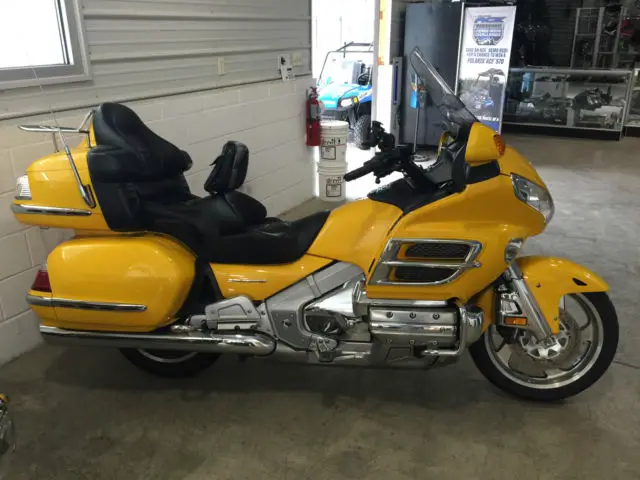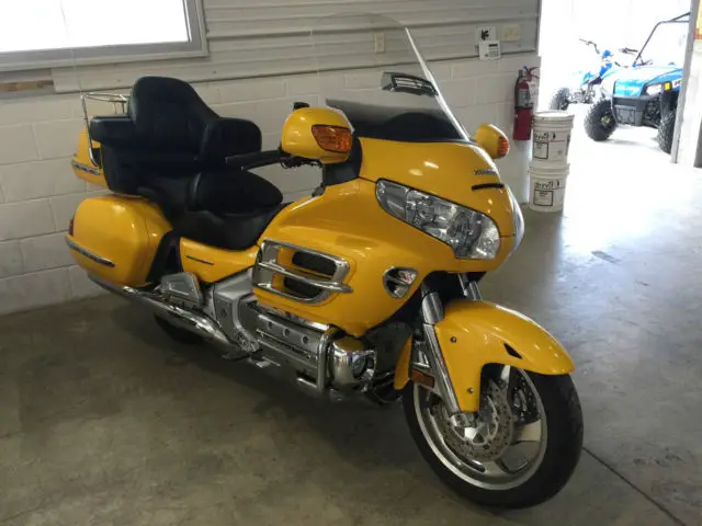 The Honda Gold Wing is a purpose-built heavyweight tourer. Now it its 33rd year of production, he legendary Gold Wing remains the gold standard of luxury touring . Today we are happy to offer to you a truly exceptional 2010 Honda Goldwing finished in a beautiful Yellow finish. This bike has only accumulated a little over 30000 since it rolled of the showroom floo, hich means the plenty of more miles left for you to enjoy. This vehicle came in as a trade on a new unit and needs a new home . Please feel free to email me or call me with any questions you may have. We are Fannin Powersports a Polaris – Victory and Slingshot Dealer located in Ashland KY that has been in business for over 50 Years . If you have any questions feel free to contact Keith Shrader at 606-585-0900 or fanninpowersports@gmail.com Model: GL1800 Engine Type: 1832cc liquid-cooled horizontally opposed six-cylinder Bore and Stroke: 74mm x 71mm Compression Ratio: 9.8:1 Valve Train: SOHC; two valves per cylinder Induction: PGM-FI Ignition: Computer-controlled digital with three-dimensional mapping Transmission: Five-speed including Overdrive, lus electric Reverse Final drive: Shaft Suspension Front: 45mm cartridge fork with anti-dive system; 5.5 inches travel Rear: Pro Arm single-side swingarm with Pro-Link single shock with computer-controlled spring preload adjustment with two memory presets; 4.1 inches travel Brakes Front: Dual full-floating 296mm discs with LBS three-piston calipers; optional ABS Rear: Single ventilated 316mm disc with LBS three-piston caliper; optional ABS Tires Front: 130/70R-18 Rear: 180/60R-16 Wheelbase: 66.5 inches Rake (Caster Angle): 29.15o Trail: 109mm (4.3 inches) Seat Height: 29.1 inches Fuel Capacity: 6.6 gallons