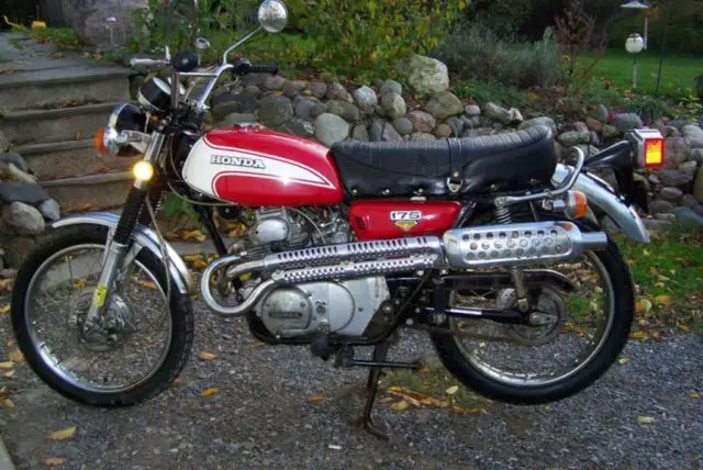 1972 Honda CL-175 scrambler in pretty good condition. Everything appears to be original. Bike was stored in a barn for the past 25 years. Gas was drained and the carbs and float bowls are clean, o varnish. The engine rolls over freely, rakes work, ights and signals are there, eat is good, ires good for their age. (I believe they are original?). There is some surface rust as to be expected. There is a small dent in right side of gas tank, t. front signal has hole in the lens and the right brake lever is bent on the end but still functions fine. These minor defects were from the original owner tipping the bike over at very low speed and that was the last time he rode it. There is no battery in it and the kick starter does not engage when you kick it. I'm not a motorcycle mechanic so I don't know if it a simple fix or not. Except for these items listed, can not see any other mechanical issues with this bike. But, E AWARE- THERE IS NO TITLE, o I'm selling it as a parts bike. If you have ever priced used parts for this cycle, ou know this could likely be parted out for $1500 to $2,000. You may be able to purchase a copy title from DMV? Or register with another title depending on your State laws. I will consider delivering this up to 200 miles for 60 cents a mile round trip, hortest route as calculated by Map Quest or similar. Otherwise pick-up only. I don't have many more answers as the owner has passed away. Look closely at the pics for details. I've tried to show all angles. Thanks for looking and good luck bidding. Pay Pal, ashier's check, ostal money orders accepted. If you want it delivered-Determine the mileage from 14878, ock Stream, Y to your delivery point and then BACK to Rock Stream. Multiply total miles by .60 (sixty cents) per mile and include that amount in your payment. 200 miles max. one way, 00 mi. max total! If this is too much math, 'll figure it for you after the auction ends.