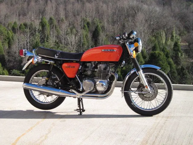 New battery, ew NGK plugs, ew air filter, ew oil filter and fresh Honda GN4 oil. Carbs have been ultrasonically cleaned, ebuilt with new kits and synchronized. She really runs smooth and great!! Shifts smoothly through all gears. Front brake system has been evacuated and clean fluid installed. Everything electric works as if it were new. Tank is clean inside and unlined.