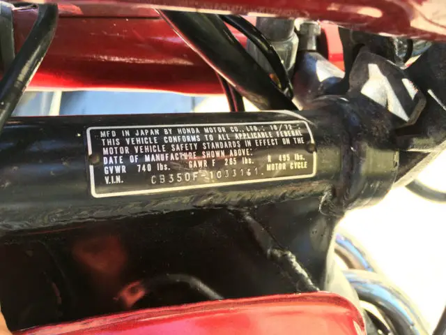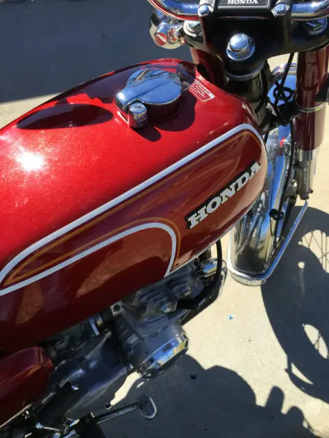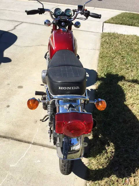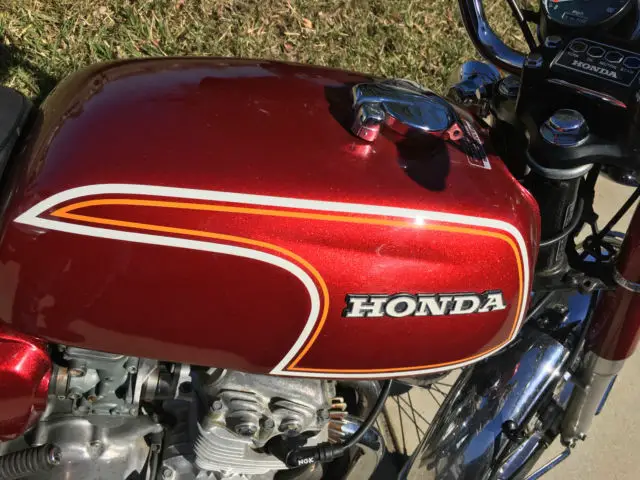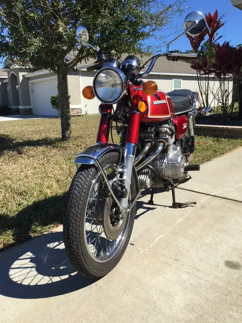 Beautiful 1973 Honda CB 350four in orignial condition. All original parts with the exception of a new battery. This bike has had at least 3 previous owners. I have theoriginal title from 1973 from the first owner. To my knowledge it was the second owner who kept verymeticulous records on the bike which are included with purchase. There are only 8,000 miles on this bike which is an exceptionally rare find.Has clean title and Florida registration in my name. The only flaw on this bike is a dent along the side of the tank. (shown in picture). I bought this bike to turn into a cafe racer or brat, ut because of its original condition I decided to sell it as is. Will make a fun project or a fun weekend ride.