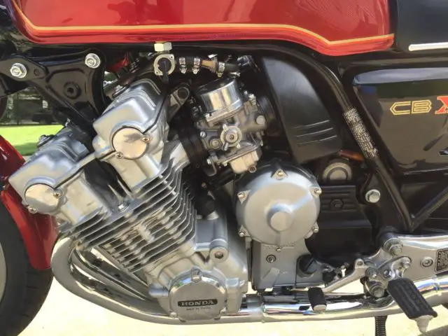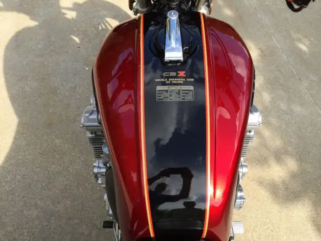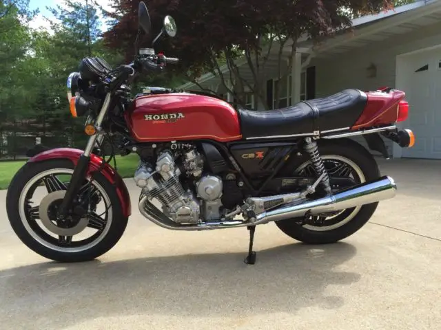 1980 Honda cbxGreat condition, ew candy glory red paint that is a perfect match like they were painted back then with a high quality 3m decal set. I have a nos paint set and I take them to my painter and they match it as close as possible. It is spot on match. It has a new sankie exhaust which is a close as possible reproduction exhaust as it was back in the day. New AGM battery. New Honda OEM mirrors. New tires front and rear. Rebuilt front and rear brakes and master cylinder kits. New plugs. New air filter. The carbs was just cleaned and separated to put new o rings on the supply tubes. Fresh oil change with filter. Cleaned oil pump screen. This was a one owner bike. The previous owner passed and I bought it from his son. It runs great and shifts through all the gears as it should. It idles around 900 rpm and will sit there and run like a sewing machine. All the electrics works as they should also. I cleaned all electrical connections, o to the age of this bike. This is a very low mileage bike and I beleive it is accurate. 11,770 miles and there will be a few more on it as I am still riding it. I have put around 200 miles on this since I got this as I wanted to make sure everything is working as it should. I will sell internationally but you have to make all arrangements and pay for all shipping. Anybody can email or even call me at 217-508-7693 for any questions about this bike. You can make a appointment and see this bike in person if you like. A $200 non refundable deposit is required at the end of the auction. Please remember this bike is 36 years old and not a brand new bike but it is in very good condition. If you want any more pictures of anything please ask. I will help all I can on my end as far as helping load to help your shipper. Good clean title in my name.
