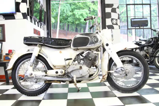 1 of 2 for sale the other one is BLACK: His and Hers! A Beautiful Vintage Touring Motorcycle For-Sale- This bike is 60 years old & can easily make it another 60 if restored & cared for!Clean Connecticut Title! Honda’s are established as some of the most reliable motorcycles thanks to superb engineering that shows by the abundance of bikes from this era that still run perfectly fine to this day! Great alternative to newer scooters or smaller motorcycles! Ready for your & restoration plans --------------------------------------------------------------------------------------------------------------------- Please check out our detailed video on this motorcycle:https://youtu.be/_bzgVLI2oSo --------------------------------------------------------------------------------------------------------------------- This bike has been sitting for years and is not in running condition, ut it only has 14,729 original miles! This bikedoes turn over & shows good compression!This is a great parts bike or is even a great candidate for a full frame off restoration. Any enthusiast of this era and more would appreciate this bike added to their collection. Attractively priced, his bike is a beauty and is ready for your love and restoration plans. Don’t miss the opportunity to own her today, lace your Bid or buy it Now! Either way, ou won’t be disappointed she is waiting for you!
