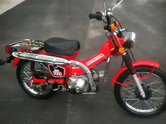 Amazingly clean Honda 1984 CT 110 Trail Duel Sport motorcycle. This owner was anal about cleaning these,service,detail,etc. includes buddy seat,with extension,extra storage boxes. Like new condition and county road miles only. Stored inside since purchased. 1 owner. We are selling these for owner. A 1984 and an 1986 see that listing also. All Assessories and auxiliary fuel tanks on each. (0.06 gal.) comes with original owners manuals and some spare parts. Please view images and ask questions before bidding. Located in Island Oark,Idaho,30 minutes from Yellowstone park. So you will need to arrange shipping or pickup prior to bidding. Engine has been gone through,cleaned etc. all original paint. You just don't find machines like this anymore. Honda built this superb cycle for 50'years and should have never stopped making this collectable machine. Good Luck.