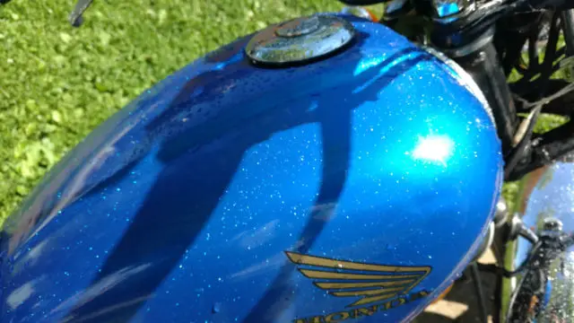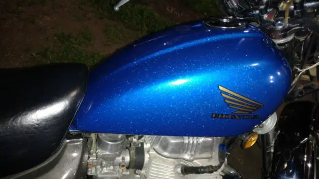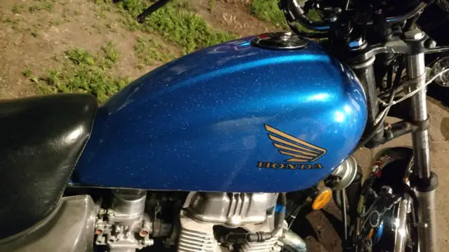 I've bought this bike 18 years ago when I was 18 as my first motorcycle. It has been and still is a great little bike. Over the years things have been well cared for and either replaced due to wear or up grading. The original color was red but when original tank started leaking where the Honda emblems were screwed to the tank I replaced it with a 750 tank off a bike a couple years newer. I had the new tank powder coated candy blue with a glitter clear coat. Tried to show in pictures but they don't do it justice. I painted side covers with gun metal base coat clear coat because you can't powder coat plastic and there is no way to match the custom blue on tank. Years ago when i had the seat recovered I also had pan widened and more padding glued in to make it wider and more comfortable. It has new tires and battery and fresh oil and filter change. Two summers ago the engine was rebuilt mainly because we had it apart to put all new gaskets in it and figured that was as good of a time as any. At that time it also got a new ignition stator and front and rear sprockets with new oring chain. Over the years any bearings or seals that have needed replaced have been. My oldest boy started on this bike a couple years ago then moved up to bigger bike and now my youngest used it to learn on and now is ready for a bigger bike. It needs to move on to someone who needs a starter bike or a city commuter bike. We rode 200 miles today and it never gave us any trouble.