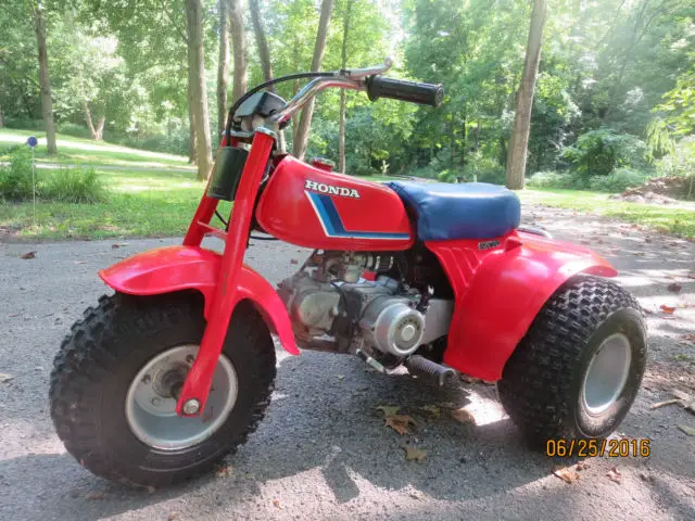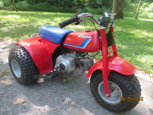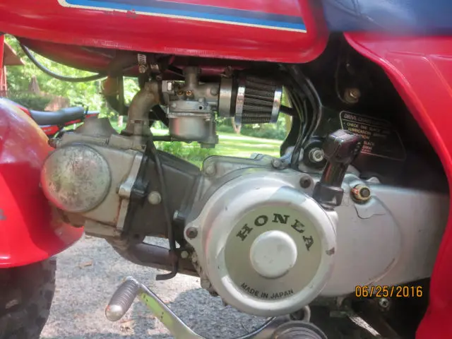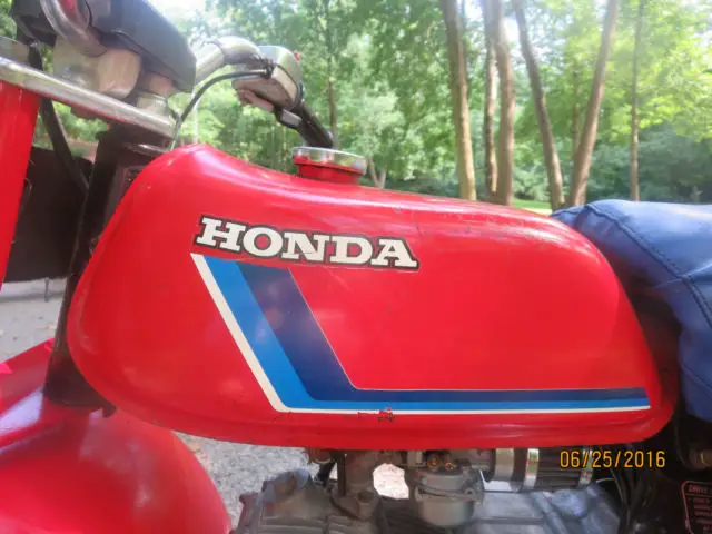 This is a 1983 Honda ATC 70 that is in good running condition and is mostly original Honda from top to bottom. It is a 4-speed with centrifugal clutch (no clutch lever, ust 4-down on the foot lever) and a gear indicator, howing neutral it is located above the shift lever. I have had it since 2009. Here are the details: I bought in 2009 it as a non-running machine in need of TLC, op to bottom cleaning and some parts. It was a gift for my children that year, hey had many fun times on it but have now outgrown it. I replaced the following right after getting this ATC 70 in order to get it running and road worthy: tires seat seat cover rear decal gas cap stator condenser points brake shoes spark plug spark plug wire carburetor and air filter It is in very good shape overall, ut bear in mind it is 33 years old! It's nice, ut it is not a museum piece. There are scuffs, cratches, ings etc. Exhaust pipe is rusty. Dent in right side of fuel tank and tank has some scuffs and worn paint near the seat. One of the footrest metal pieces is missing, t was lost by the kids on some trail years ago. It can be ridden fine without it (the main foot pegs are both there), ut you may eventually want to buy a replacement for it on ebay or elsewhere, t will bolt right back on. Please look at photos and ask questions BEFORE you bid. I am happy to take more photos if you need them. Non-paying bidders will quickly reported to ebay, don't have any tolerance for people wasting my time with irresponsible bidding! It does not have an odometer so no idea on mileage, articularly because it wasn't mine till 2009. Mileage with my kids is less than 200 miles. Always stored in garage while I owned it. I changed the oil every year and kept the tank full of gas all winter to minimize rust but drained the carburetor. Each spring it started right up. There is small puff of smoke on cold startup but not when running. Note: always allow oil to warm up for a few minutes with these small air-cooled engines for best results and long engine life! Chain was kept lubed and adjusted and is not rusty. Brakes work well. It does not leak gas or oil. The tank is original steel. It has very light surface rust inside on a few spots. I installed an inline fuel filter to prevent particles getting into the carburetor and clogging it and have never had a problem. There is a governor screw on the accelerator to make sure kids cannot go full throttle until they are ready, his was a handy feature that I used. It can move pretty quickly at full throttle, ven with a 180 lb. adult on it. So safety is an important consideration when the little ones are figuring it out. This is a fun little machine, ock solid Honda quality. They don't make them like this anymore :-( Thanks for looking. Arranging shipping is buyer's responsibility. Pick-up is also fine, ut please work with me on that as I work a lot.