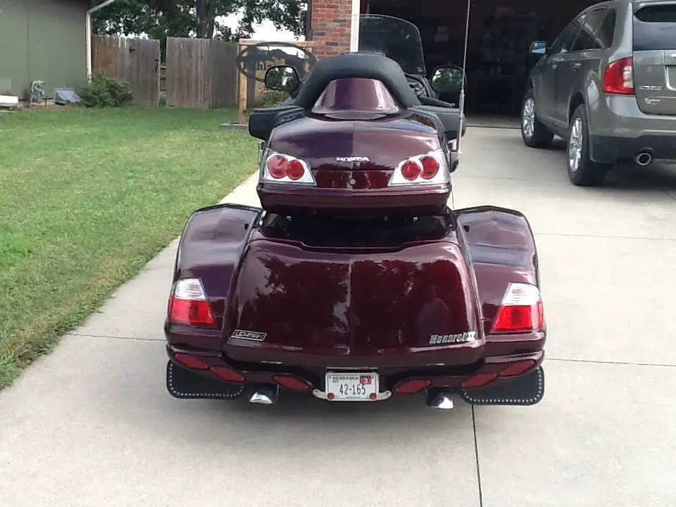 I am selling my 2007 Honda Goldwing Trike. This trike only has 8300 mile and has always been garaged. It offers a Lehman trike kit Monarch II with additional tail and brake lights and extended running boards for extra comfort. Â It offers blue LED running marker lights all around. ring of fire on front wheel. MP3 player hookup. headphone hookups. extended passenger arms rests and foot rests which makes the passengers ride just as enjoyable. In addition chrome wheels and adjustable air ride shocks. This ride is in excellent condition with the exception of a small scratch on the front fender and small bend on the tailpipe extension. Â This bike is ready to ride from coast to coast. Â If interested please contact Jeff or Brenda at 402-879-5611. Â We are located in Superior. Ne. Â