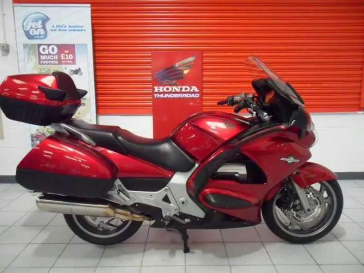 Honda ST1300A9Honda ST1300 Pan European. Ex Honda UK bke. fitted with full luggage and looks stunning in Honda red. Probably the best mile munching bike money can buy. Ready to tour! For more info call Mark. Gareth or Mel on 01633 868888?ˆ? Manufacturer warranty?ˆ? Anti-lock braking?ˆ? Immobiliser?ˆ? One owner?ˆ? Owners manual?ˆ? Panniers?ˆ? Trunk/top-boxAvailable from Thunder Road Motorcycles Ltd on 01633 868888 / SalesDept@ThunderRoad. co. uk