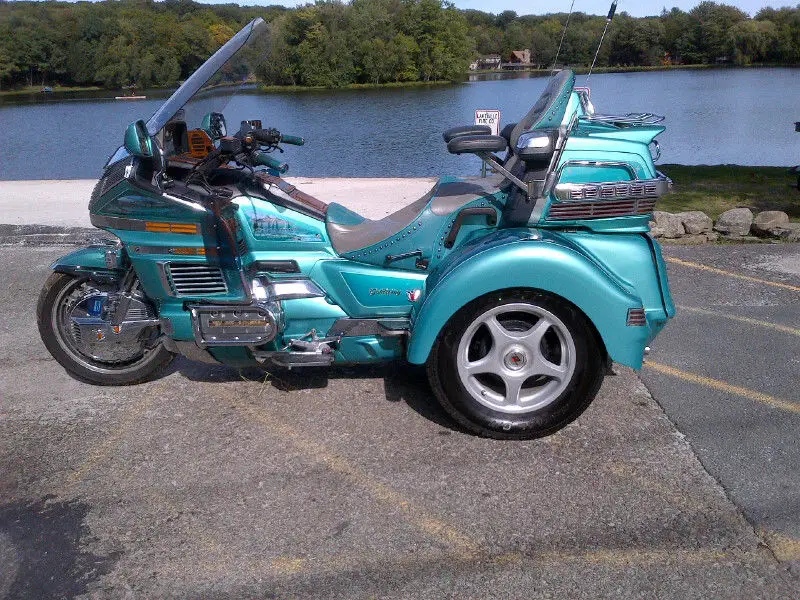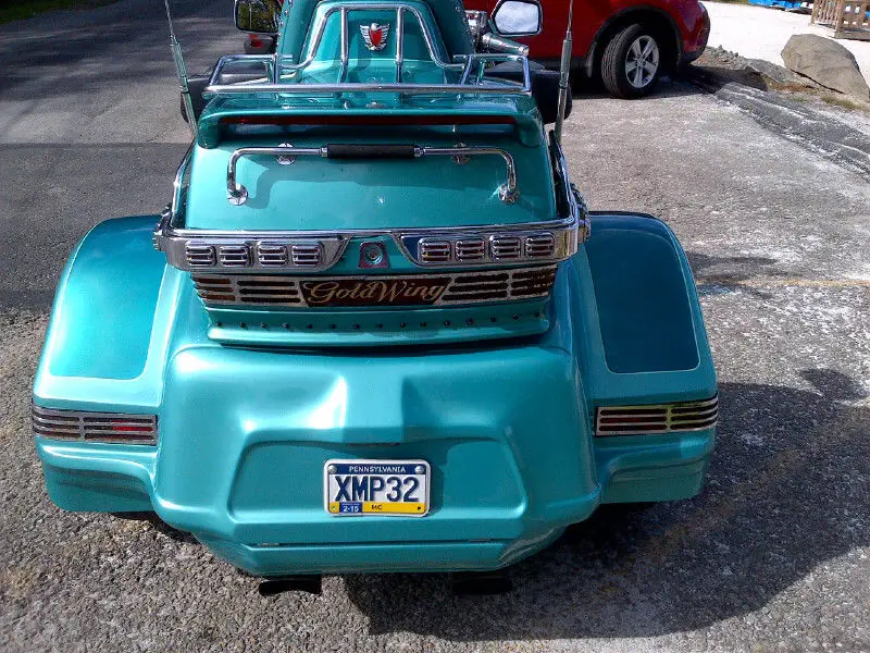 1994 Honda Goldwing 1500 SE Lehman Trike w/ Reverse. The bike is in nice condition and runs great. It has super low mileage of only 42. 77 miles. The Lehman trike conversion was done in 2008 and only has approx 8. 00 miles on it. The bike is a real show stopper. One of a kind airbrush artwork on fairing. tank and trunk. Beautiful two-tone teal blue/green paint. The bike has burlwood trim on dash and lots of chrome. For those long road trips. there is a comfy custom Corbin color-matched king and queen seat with removable driver backrest and fold-out passenger armrests and a large passenger backrest. Clean PA title in-hand. It also features cruise control. custom rear wheels. an extended vented windshield. wind deflectors. driver and passenger floorboards. wooly seat cover for those hot sunny days. AM/FM cassette with CB and four speakers. burlwood trim on dash. lots of chrome. and Ring of Fire lighting. It also comes with brand new fender bras that were never installed. bike cover. and a black canvas trunk topper duffle bag with rain cover for even more storage. It has a tour pack top trunk that can fit 2 full face helmets. and has a huge rear lower trunk. The bike has been well maintained by a local dealership including all required annual maintenance since purchase in 2009. A brand new front tire was installed in 2013 and the rear tires are in excellent shape. A full service was just completed in June 2014. including a new battery. And it recently passed inspection in September 2014. Low mileage! Runs great!Please note that this is a 20 year old motorcycle and has the typical minor wear and tear you would expect. Some of the chrome taillight covers have some pitting (but the covers can certainly be removed). the wood could use a polishing. the seat has some wear on it. and there are the typical small rock chips here and there. Also the radio worked when it was purchased. but hasn't been used in a long time and doesn't seem to be currently working but the issue is probably something simple. Overall the bike is in really nice condition and runs and drives great. For the price. it is a tremendous deal!If you have any questions. please feel free to contact me. If you would like to arrange to see it. we would be happy to accommodate you. The bike is also listed for sale locally. so we reserve the right to end the auction at any time.