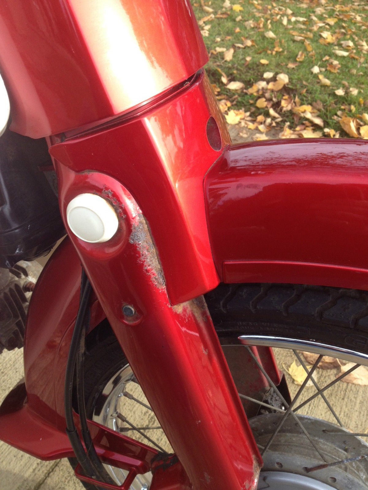 JOBS LEFT TO MAKE HIS A REALLY GOOD BIKE ARE A NEW CHAIN GUARD. EXHAUST THOUGH WORKS FINE IS RUSTY. THE CENTRE AND SIDE STAND WOULD BENEFIT FROM REMOVING AND RE-PAINTING.