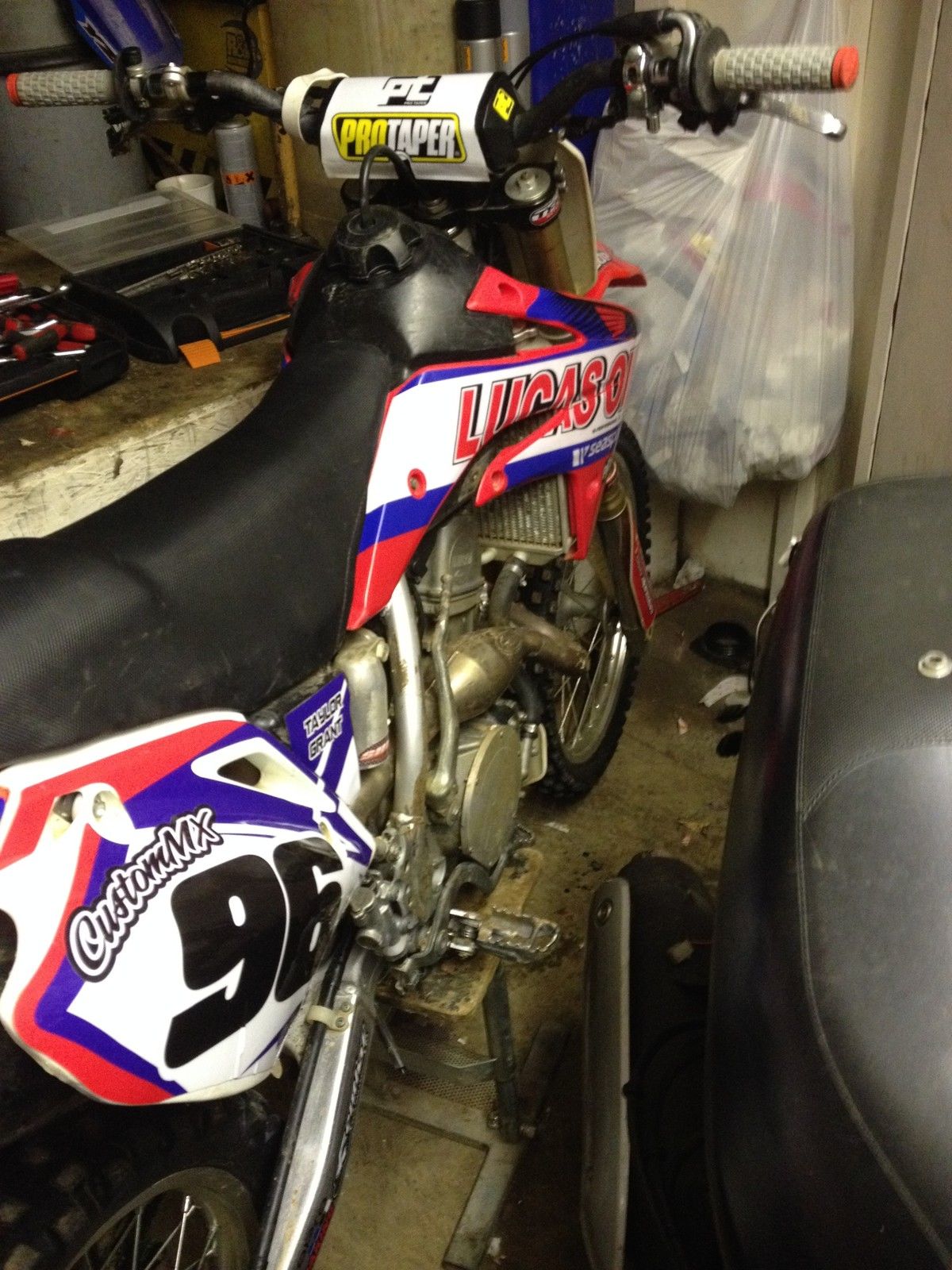 CRF150 2008 big wheel for sale. nbsp;FMF mega bomb header pipe with carbon end canRed rims with gold talon hubs. wavey discs and blue spoke skinsnew front and back brake padsLucas oil graphics kit with custom mx number platesPro Taper fat bars Pro Taper grips flexy brake and clutch levers race suspension springs fitted in forks the bike is well looked after and comes with a thew spares like the standard exhaust. old clutch. fork springs. plastics and more