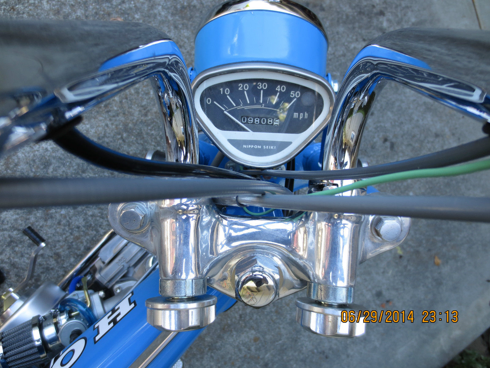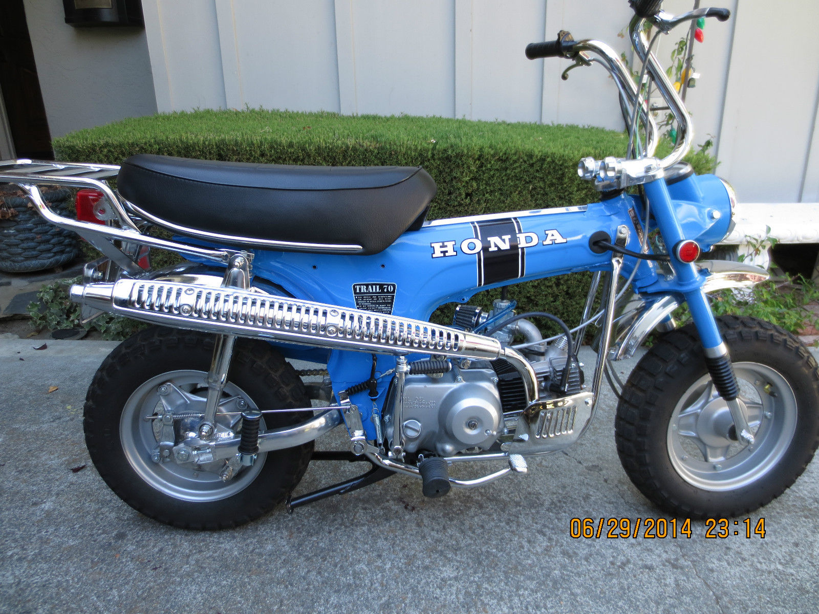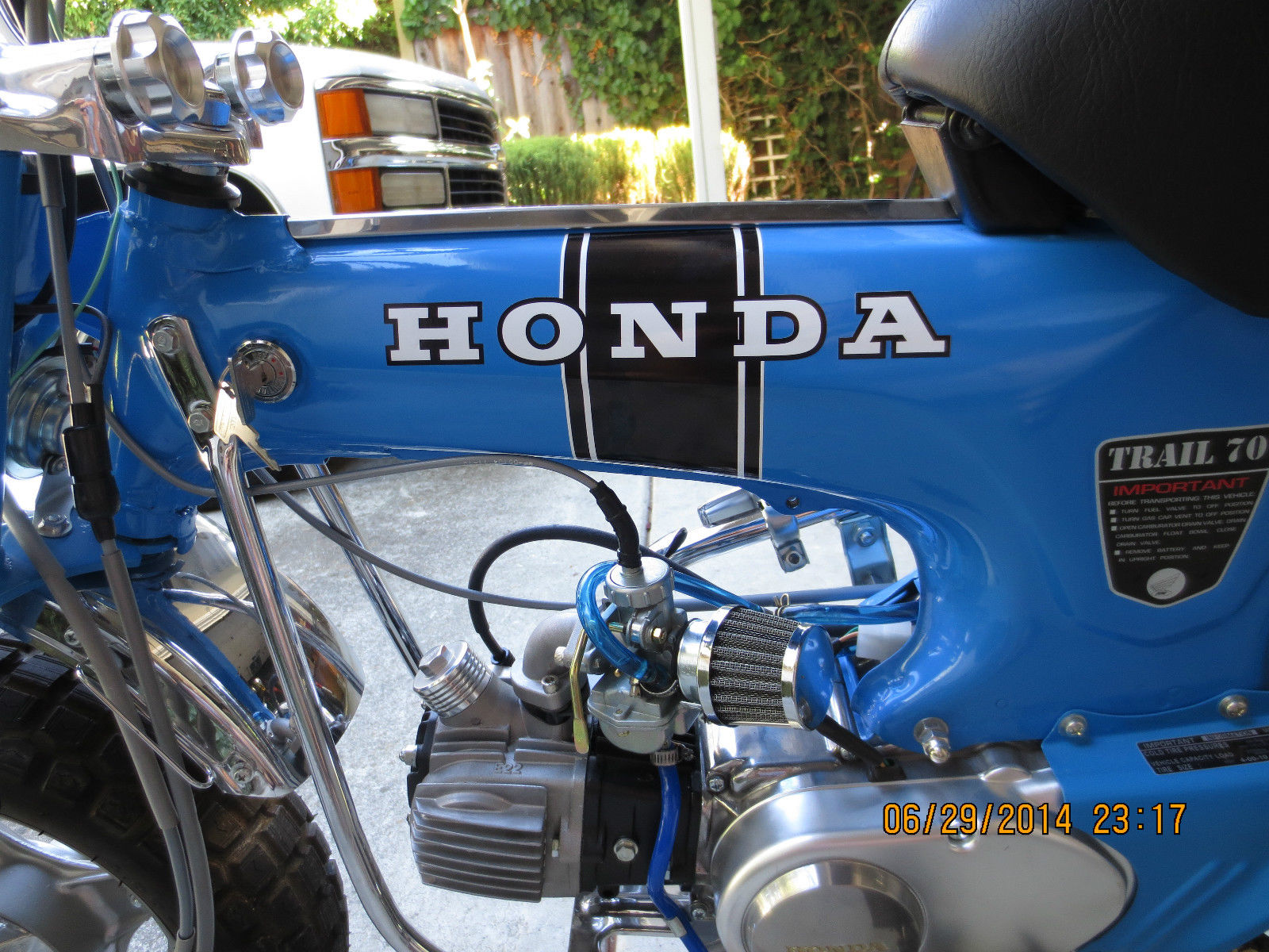 Odometor shows 9810 miles. actual miles on the CT70 since restoration is 7-8. I decided not to replace the odometor with a different one showing less milage. because I find this very popular practice extremley dishonest.