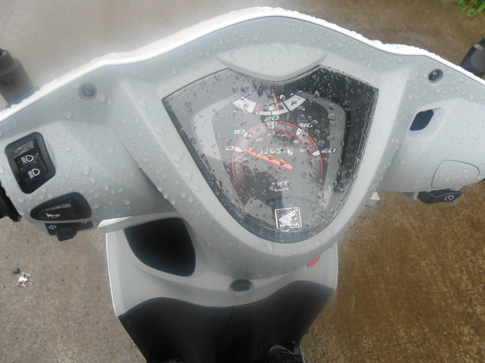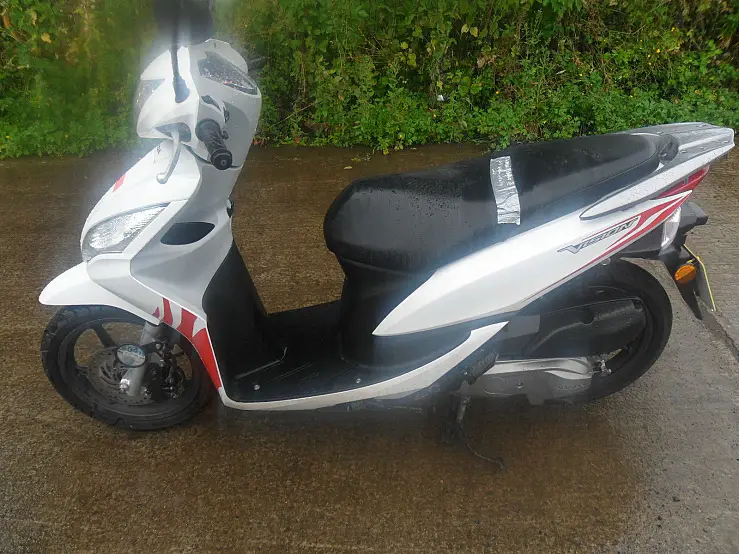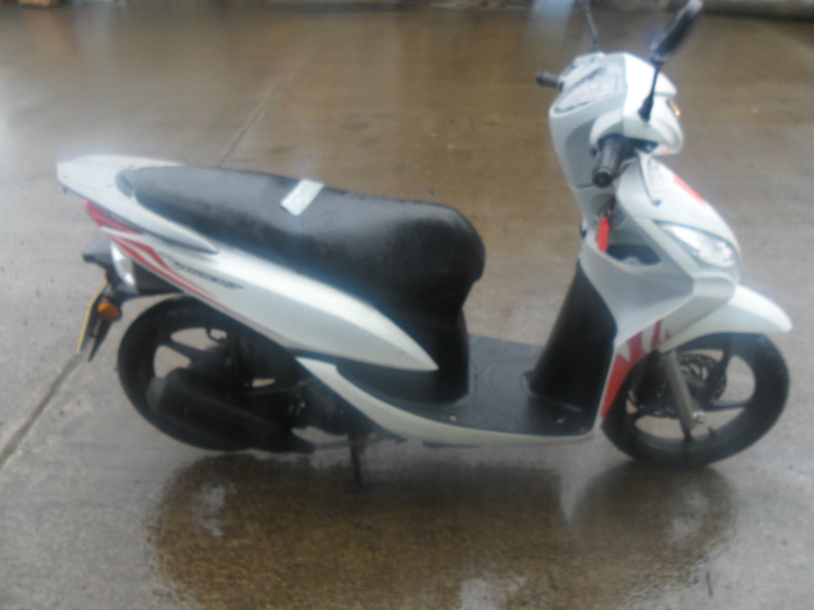This scooter has some scrapes to the air box an also a small scrape to the rear right fairing.