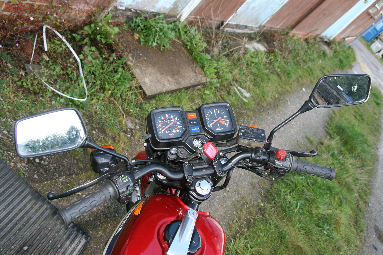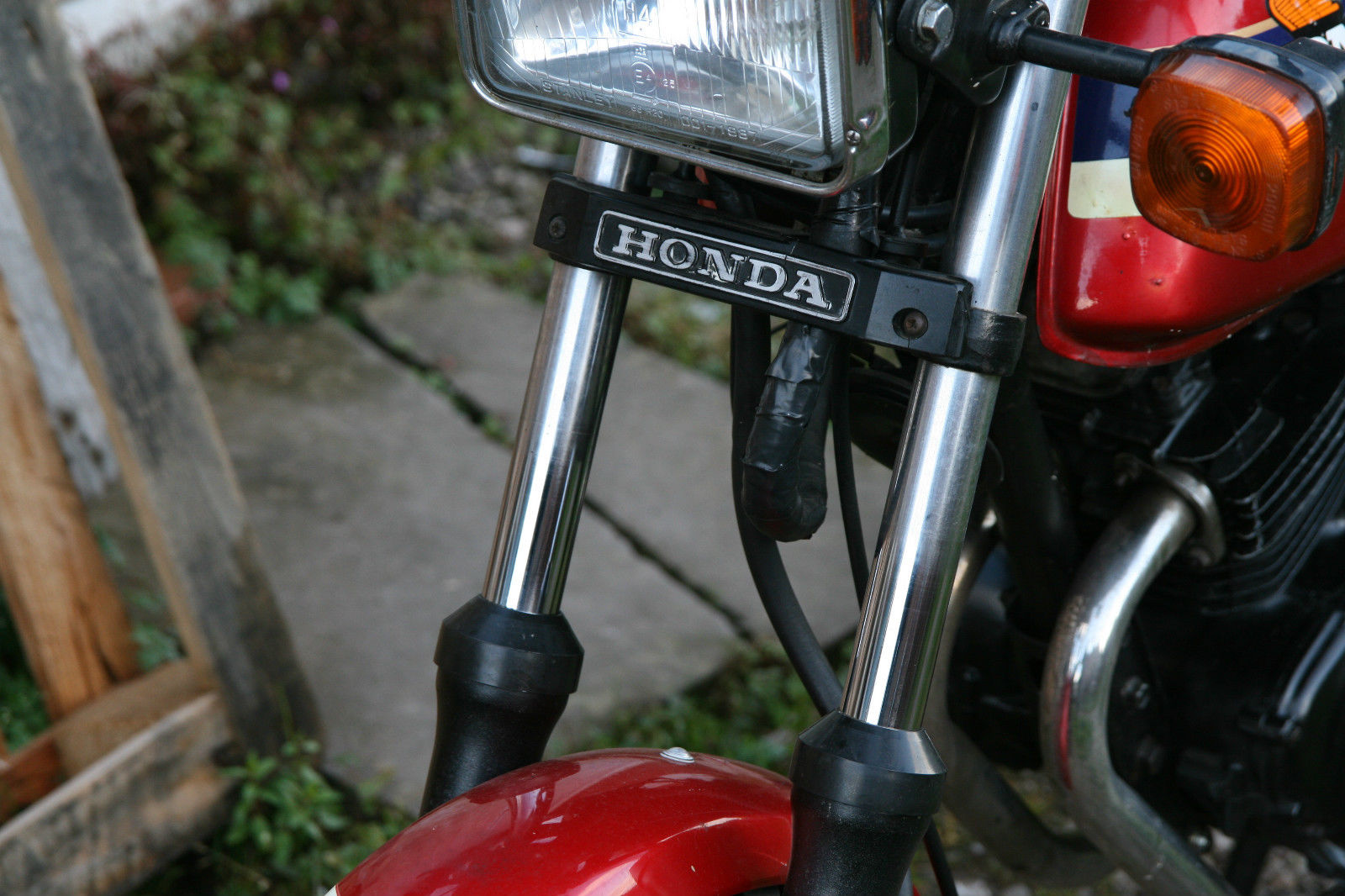 This particular Honda is one my partner bought for me as a non runner. He bought it because the cycle parts are so good. The paint is excellent. not perfect. there is the odd small scratch. but it is really good. The stanchions are like new. It has modern Avons with virtually no wear. The bike also has an excellent original Honda type exhaust system. a real rarity. The chain and sprocket look good too.