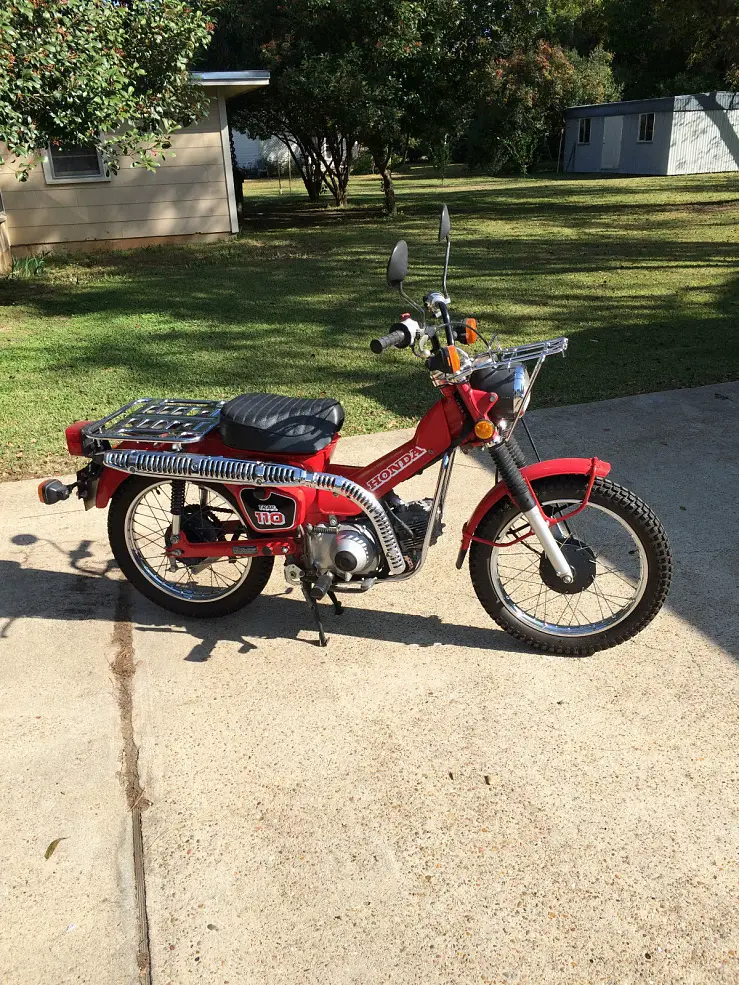 Here is a opportunity to be a owner of a very rare and high demand little trail bike. For sale is a 1986 Honda CT 110 Trail Bike. This is the last year Honda imported them into the United States. They are still produced for third world countries. The bike is 98% mint condition and everything works perfectly runs great. As you can see. the photos speak for themselves. The front rack is a rare accessory option. I also have the dealer shop manual. The bike comes with a clear title. and currently licensed for street use. You'll have to look long and hard to find one in this condition. One note that I left off. the paint on the plastic cover. where you cross your legs over to sit on the bike has some wear areas. See Photos. Please contact me for any questions. Thank you for looking.