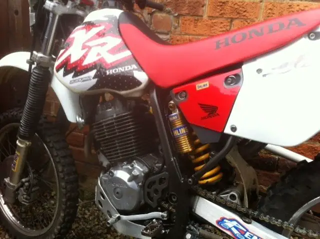 For sale is my xr 400 that I have v5 in my name. I have not had it long and am selling as I can not get to grips with not being able to touch floor with out leaning it. It has the ohlins rear shocker which I have lowered to max . I stripped it down and did a ground up rebuild about 5 weeks ago. Frame is plastic coated in sparkle gunmetal. I greased all links and replaced many parts and yes a new swing arm bolt was put in . its done 9700 km tested and and taxed while march . Engine starts stops okay I have started polishing engine cases but only done one side at present. Here is a few things I replaced or can remember. Only ridden it 4 timesFull plastics/chain and sprockets/wheel bearings/brake pads/rear tyre/tank decals/oil filter/oil/most nuts and bolts/swing arm bolt/clutch cable/rental bars/ Dep tail pipe not noises I hope the bidding makes ??1350. any viewing any questions 0781 5549983 no silly offers please. You win it you buy it ??50 deposit with in 24 hours please I would prefer anybody to view first before bidding as these bikes are tall.