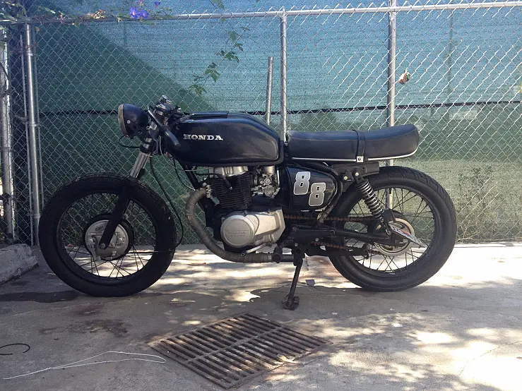 This motorcycle is in fairly good condition. It is a kick starter. It's been completely stripped so it has no gauges or blinkers. It's a short pipe motorcycle which means it has no muffler and it is very generous in sound.