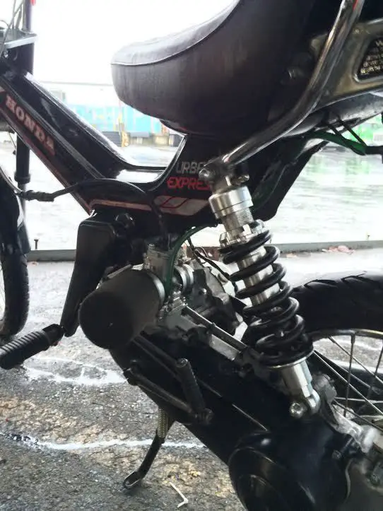 - Stiffer suspension shock/spring - New Radial Tires & TubesShipping: We can ship domestically (United States)Shipping would include us disassembling the moped. draining the gas. and packaging it sections similar to a bicycle being shipped. Shipping total will be around 300$ - $100 for handling. 200$ for shipping. Price may vary depending on location.Also published at eBay.com
