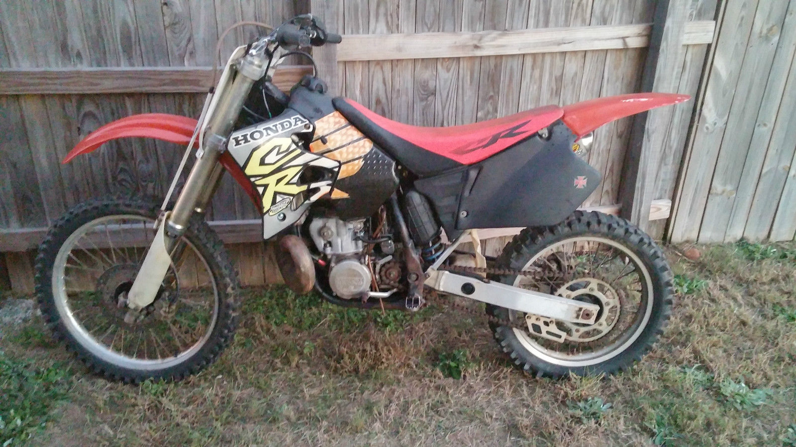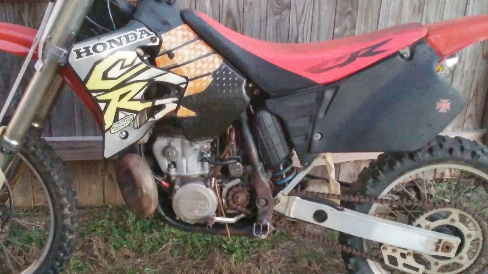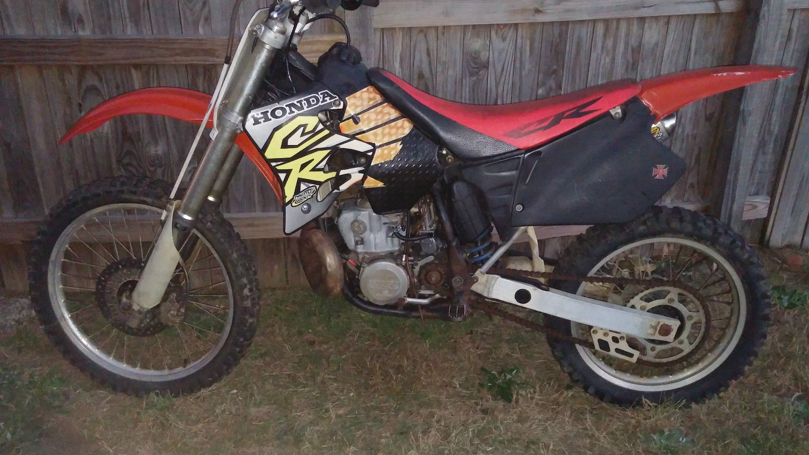 This is a 1994 CR250 with a fresh top end. I have only ridden the bike for about two hours since it has been rebuilt just to make sure everything was installed correctly. I purchased the bike a few month ago and I’ve realized I need to stick to four wheels. Since I’ve had the bike I have installed and new piston and ring set. water pump seals and all gaskets leading to the water pump. steering stem bearings. a clutch lever. a brake lever and a new air filter. The bike will need a rear tire soon. The bike does show its age. but it stable and very fast. I will provide a bill of sale for the bike. I am starting the bid at what I have in it with No RESERVE!!!!