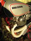 Custom '71 Honda CL450. Frame painted red to mimic the infamous "red frame" 250 & 305s of the 60s. otherwise a fairly standard 450. Vintage seat and taillite added to aid the LOOK. Runs. shifts. stops well. Study the pictures and ask as many questions that you can think of. I'll get back to you ASAP. Thanks. tim. THANKS FOR LOOKING! THANKS FOR BIDDING!