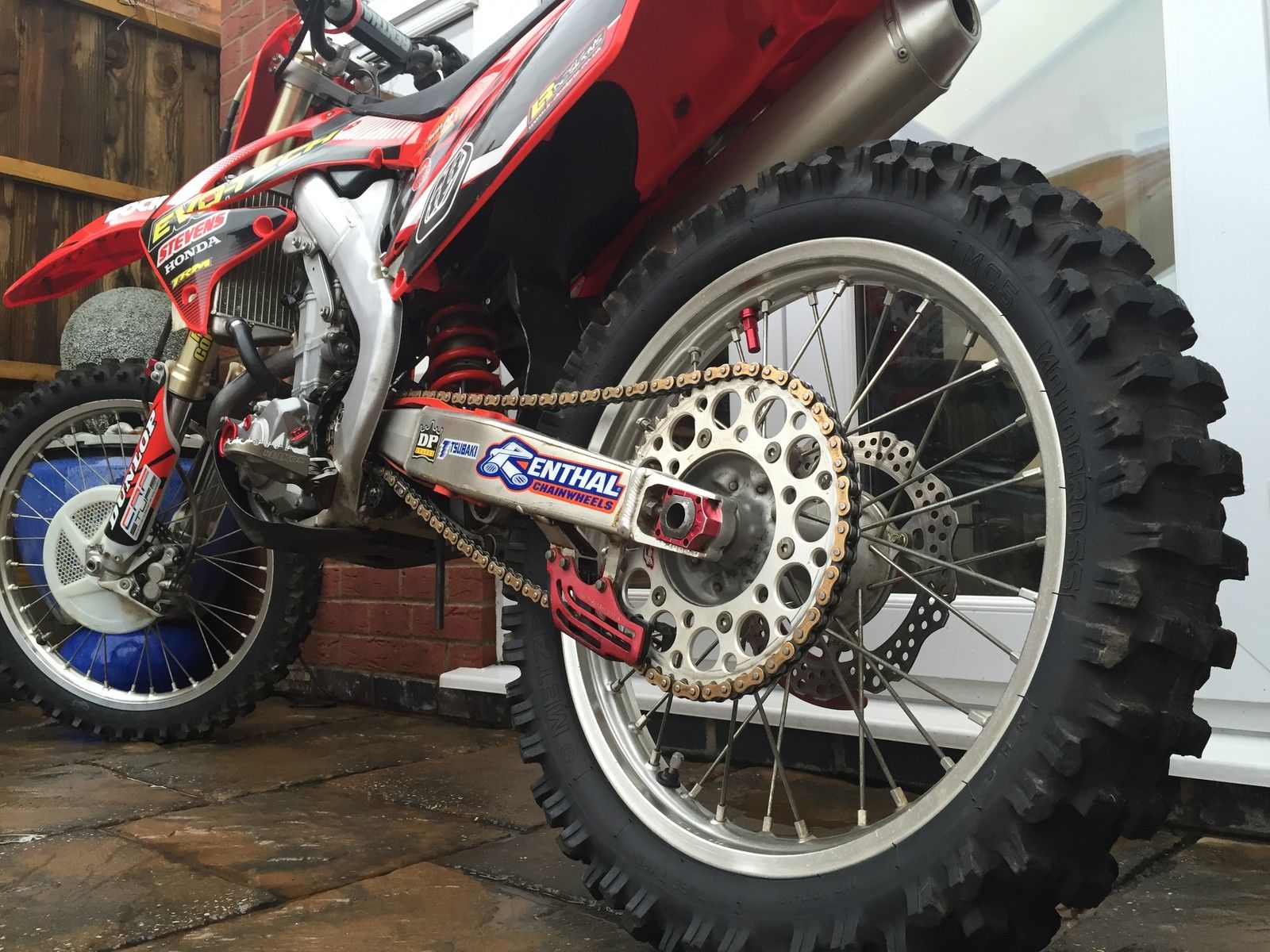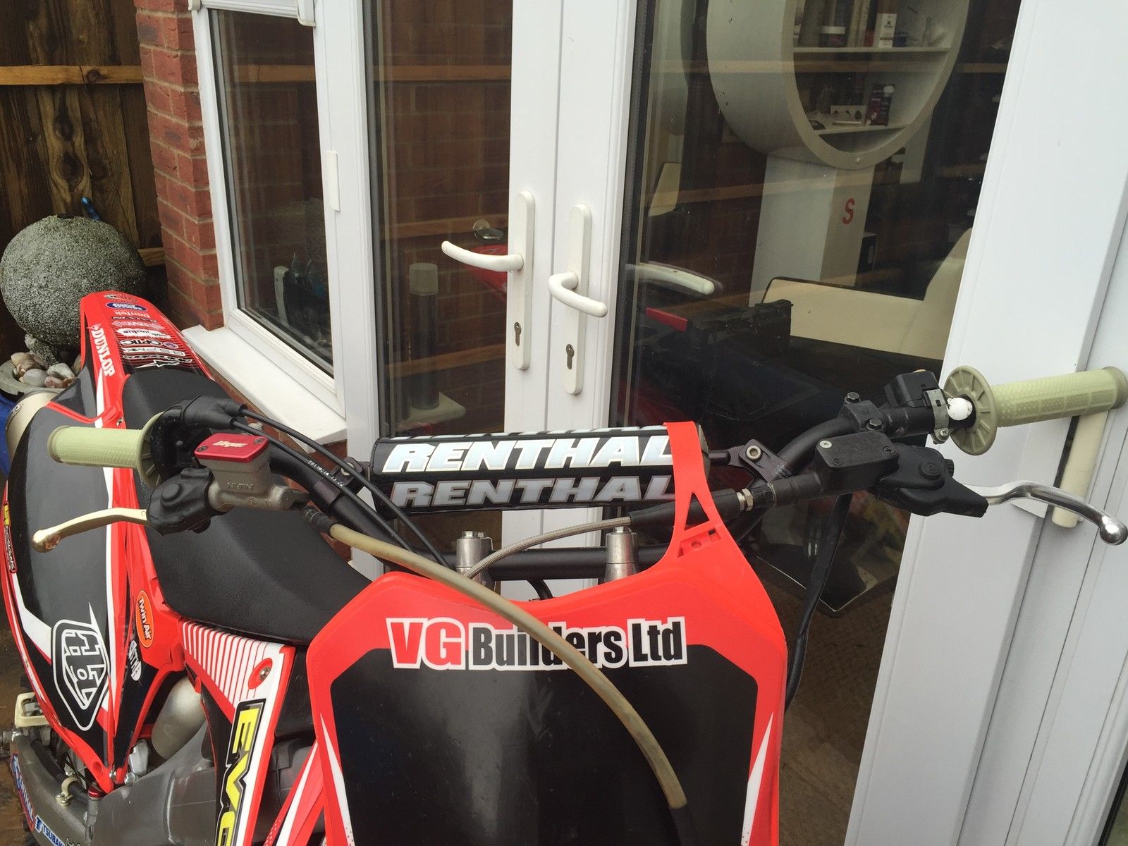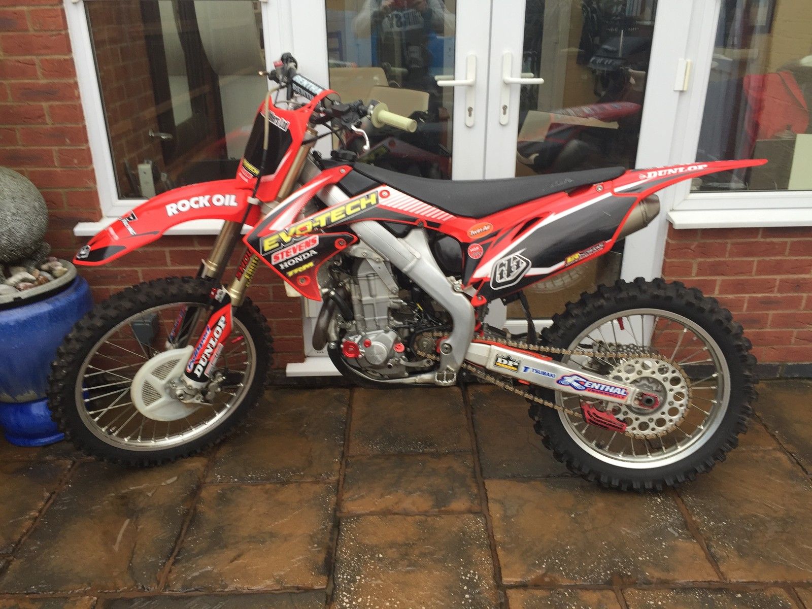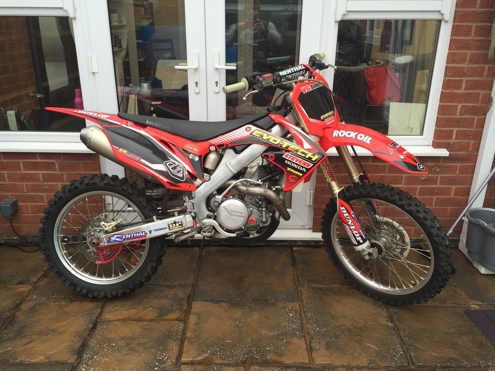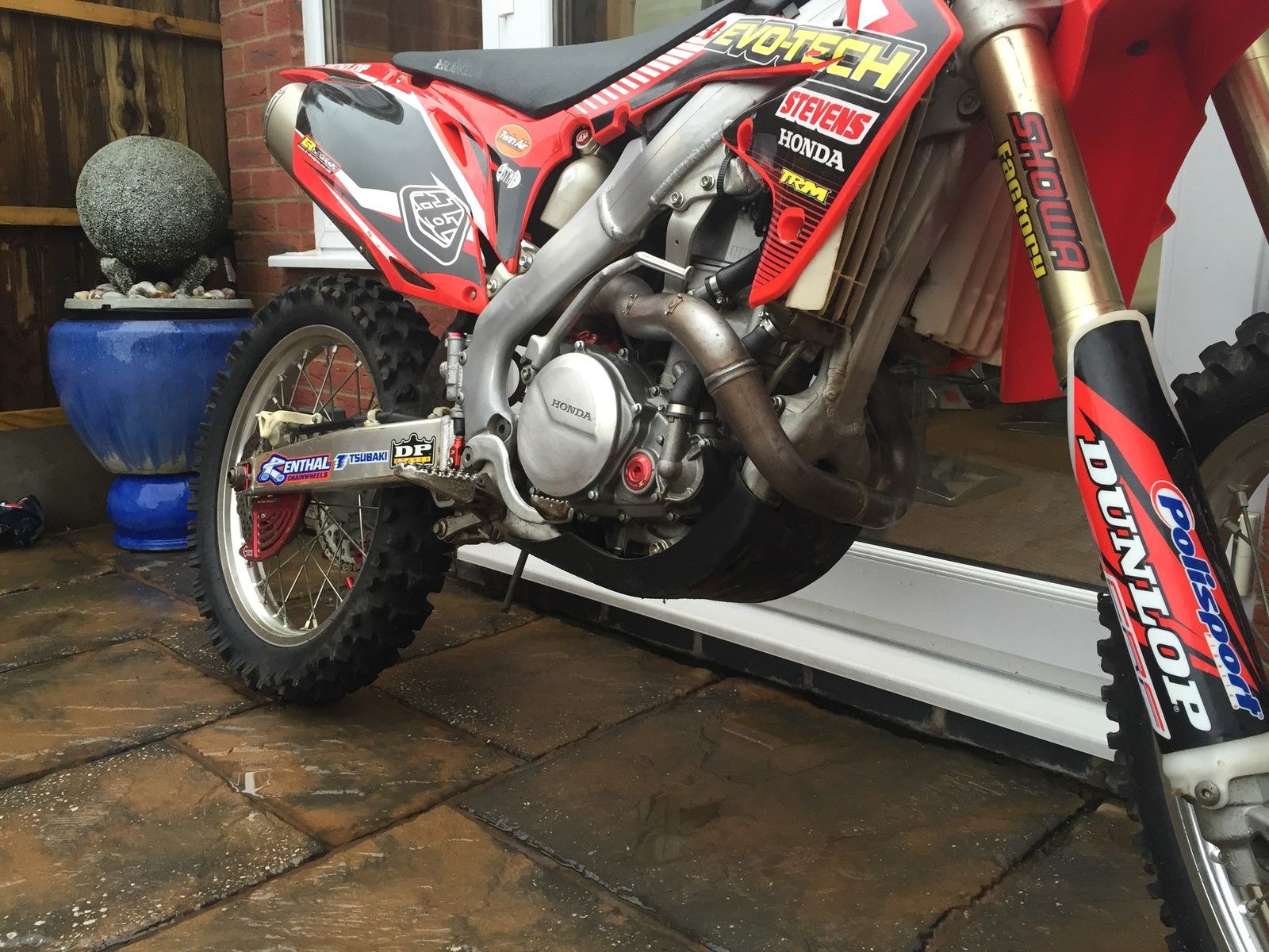CRF 450 2010This bike is a very clean well maintained example. the bike has been ridden very little over the past two years so very low hours. recently had a ?700 gearbox rebuild with receipts to prove. overall condition of the bike is fantastic very little wear. the bike has many extras which include :FMF exhaust. reikon footpegs. a brembo hydrolic clutch conversion. red anodised brake clevis. resiviour caps. oil caps ect. uprated stant racing radiator cap. renthal bars. fasttec racing chain guide and rear disc guard. remap by eastwood honda. the bike also has good condition chain sprockets. brand new brake pads. brand new renthal kevlar grips. spare plastics. please feel free to contact me on 07527659691 for any extra information thanks Jordan.