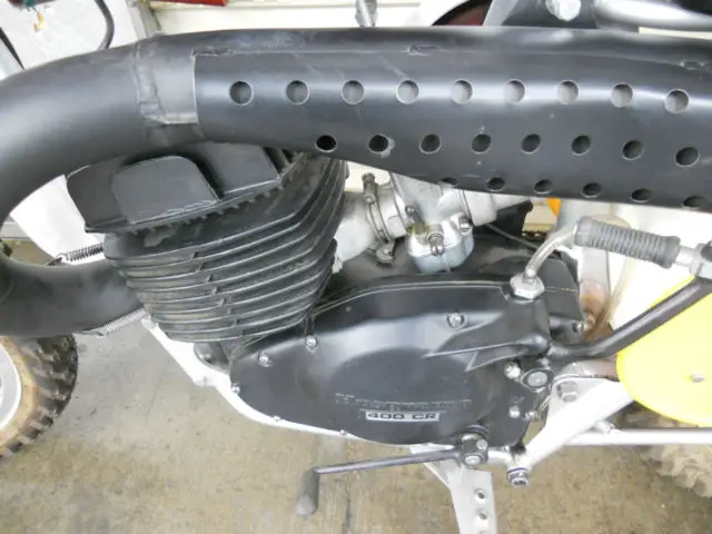 HERE FOR SALE IS A VERY VERY WELL DONE RESTORED ORIGINAL EXAMPLE OF THE 1973 HUSKY 400 CR THIS BIKE CAN EASILY BE A SHOW WINNER WITH NOTHING BUT A CLEANING BEFORE THE SHOW AS IT DOES HAVE SOME DUST ON IT FROM SITTING IN THE SHOP. IT IS A NUMBERS MATCHING BIKE . HIS IS CLEARLY A PROFESSIONAL FULL RESTORATION THAT MAY HAVE BEEN RIDDEN AROUND IN THE PARKING LOT A COUPLE OF TIMES AFTER IT WAS DONE. I CAN ONLY SAY THAT THIS BIKE IS PRETTY MUCH FLAWLESS AND RUNS REAL WELL . THE MOTOR IS FULLY REBUILT AS IS THE REST OF THE BIKE AND IT SHOWS. BUT THERE IS A SPOT ON THE EXHAUST PIPE GUARD THAT LOOKS LIKE SOMETHING SCRATCHED THE PAINT BUT I'M NOT SURE WHAT DID IT BUT IT CAN BE RUBBED OUT I'M SURE SO IT BE UN NOTICEABLE I WILL DO THAT FOR THE WINNING BUYER. IF YOUR LOOKING AT THIS BIKE THEN IT'S SAFE TO SAY YOU KNOW EXACTLY WHAT YOUR LOOKING AT AND WHAT IT COSTS TO RESTORE A BIKE LIKE THIS SO HERE IS YOUR CHANCE TO GET ONE ALREADY DONE FOR LESS THAN BUYING A BEATER AND RESTORING IT. I'M SURE THIS BIKE WAS IN VERY GOOD CONDITION BEFORE THE RESTO WHICH MAKES A BETTER RESTO JOB IN THE END ANYWAY LOOK AT THE PICS AND IF YOU HAVE ANY QUESTIONS OR WANT MORE PIX OR WOULD LIKE TO MAKE A OFFER ON THE BIKE CALL ME @ 775 782 6686. 10/6 PST AND ASK FOR DAVEBIKE IS SOLD WITH BILL OF SALE ONLY BILL OF SALE ONLY. NEVADA DIDNT TITLE OR REGISTER OFF HIGHWAY VEHICLES UNTIL 2013