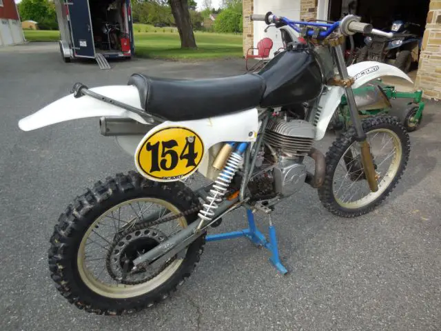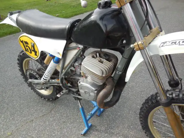 1983 Husqvarna XC frame with a 1973 CZ400 motor.This bike was built for the CZ World Championships.This is a very professional conversion.It looks factory. Fine Swedish handling and Iron Block country durability.I do not have a title,but will give bill of sale.Custom built cone pipe with DG aluminum silencer.New grips.New Mikuni carb.New Clarke gas tank.New air cleaner and air box hose.Tires and plastic is decent.Warning this is not a garage queen.It is a race bike.Bike runs good,shifts fine.Front brake is a DLS.It does need a new front brake cable. Ohlins rear shocks.You could not build this bike for the price I am selling this for.Stand not included.Can deliver to Unadilla for free.Other shipping is up to you.Please e-mail me with questions or you can call 410-925-4586 EST. I put down a salvage title to list this bike.But it does not have a title.