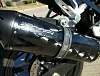 After market black muffler gives the bike a deeper and better sound. It's not so loud that your neighbors will hate you.