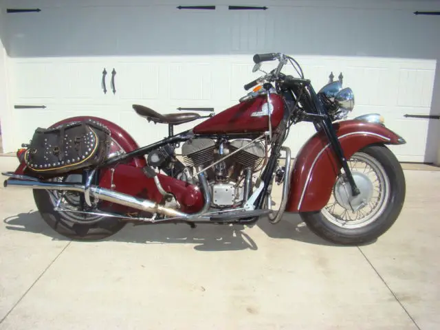 1946 Indian Chief. I have a clear Ohio title in my name. Older restoration done in 1974. It has been ridden less that 500 miles since 1984. It is a matching numbers. It has the Original seat, arburetor & 6-volt charging system. This Indian has a great vintage look with the older resto. As you would expect from any motorcycle of this era it is not perfect, ut it has a lot of appeal. See pictures for details & condition. I bought this last year from the owner who purchased it in 1984 and have put very few miles on it. I recently changed the oil and new plugs are in it. I alsoreplaced the carburetor needle, eat & float in the carburetor. It kick startsoverok and the engine has plenty of compression. It idles a little rough on a cold start but once warm it idles and runs fine. The gears shift fine. I do have this for sale locally. A $500 deposit is due immediately after the auction ends. I will accept certified check or bank wire. Bike doesn't leave the driveway until the funds have cleared.
