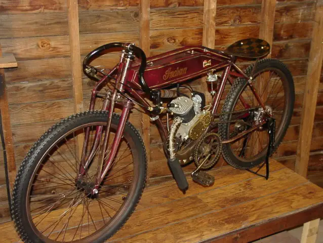 This is a indian board track replica that has been recently finished to replicate the race bikes of days gone by. Most can not obtain or afford original board track racer, hese replicas can fill that niche. The bike was built to replicate a barnfind 1918 racer. This bike was intended as a working display however the plans fell threw. Up for auction is a barnfind replica with a new 80cc two stroke motor, he bike is comprised with old a newer parts. The drive train, heels and tires are new to ensure reliability, arts are abundant if needed.The bike has a 47 inch wheel base with coaster brakes. The rear stand is included and attached to rear axle to display and start bike if so intended. The barnfind patina has been replicated from the many 100 year old example displays of autos and motorcycles at the Henry Ford museum in Dearborn, ichigan.The bike has been started but not ridden due to indoor display. Since this is a ridged frame motorized bike regular tinkering may be required as do all antique ridged bikes do. We have shipped many bikes to collectors and museums world wide - many examples can be seen at; Pinterest/mike soteros/boardtrack racer.SHIPPING IS UP TO BUYER, e will contribute $100.00 towards shipping.the bike weighs approx. 65lbs and is located at Brighton, ichigan 48116 Display or ride - there is no title, his is tagged as a moped. thanks, s