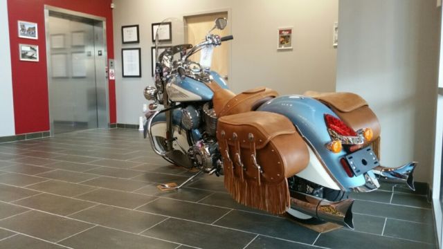 2016 Indian Vintage Motorcycle only 333 miles, ne of a kind, nly one in existence. Custom paint scheme Cashmere Blue& Ivory (1955 Chevy colors). Stage I pipes with fishtails, ustom windscreen, ir intake, eather Indian back rest (over $2500 accessories. Stock pipes and windscreen included with price. Title held by lender, ill provide clear title arrangementsafter sale/possession.