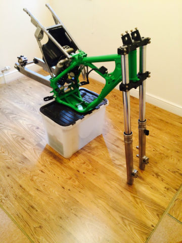 KX 125 1988 Restoration ProjectAll Used - Frame & Parts onlyIncludes:Newly powder coated & strengthened frameOriginal Green Fuel Tank + 2 Tank Clamps & Fuel TapOriginal seat & cover (Tear in front)Brand new headset bearings Top & BottomFront Forks in very conditionBrand new spring & pins for foot pegs and foot rests powder coated. Rear Caliper complete with new caliper sealsRear shock serviced & re-Gased / Spring re powder coatedTop & Bottom linkage bearings all brand newSwinging arm bearings all brand newBrand new chain guard for front sprocket. Front brake caliperFront & Rear Hubs - repowder coated in red with brand new bearingsFront & Back brake discs originalBrand new chain guideBrand new clutch cableBrand new throttle cableKick start originalCarburetor refubishedSingle radiator (looks ok condition but needs checking)Excellent project for someone to completeBuyer collects Call Ian for further information tel: 07521627937