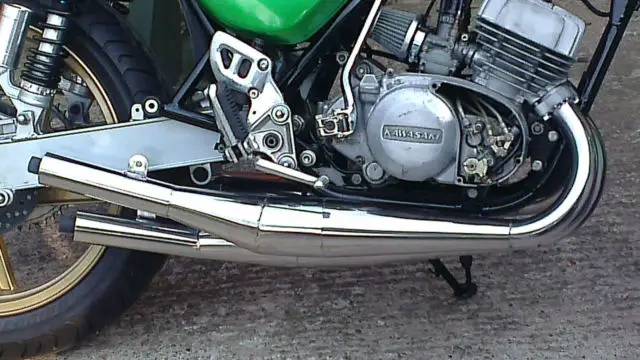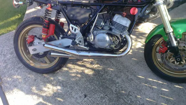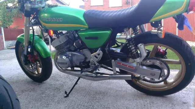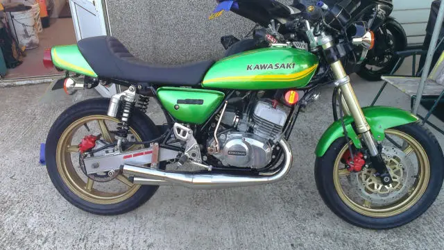 KH250BNO RESERVE BUILT FROM A 1977 KH 250 AND A 1989 ZXR 250THE WHEELS SWING ARM AND FORKS ARE FROM THEZXR 250 CANDY LIME GREEN PAINT VERY GOOD CONDITION WITH ONLY A FEW SMALL MARKSFOR THE KWAK ANORAKS IT WAS CANDY RED ON THIS MODEL. RECENT FILLER CAP AND GOOD TAPPOWDER COATED PARTS:-FRAME SWING ARMWHEELS (NEW TYRES)SEAT PANCLOCKSVERIOUS BRACKETSNEW CABLESTHE EXHAUSTS ARE ONE OFF STAINLESS MADE BYNIGE AT NRP EXAUSTS VERY GOOD SOUND CHROMED KICK STARTTHE MOTOR HAS NOT HAD A FULL REBUILD ONLY A TOP END CHECK1 NEW PISTON AND RINGSIT STARTED 4TH KICK NOT BAD AFTER 32 YEARSTHE SEAT WAS DONE BY GRIZZIES (ROTHERHAM) TWO FOUR LOOKALIKEIT HAS NEW SILVER PIGGY BACK SHOCKS(AS PIC)ALL ELECTRICS WORKREFURBED SWITCHES NEW HEADLIGHT NEW INDICATORS NEW BATTERYTHE POINTS ETC. COULD DO WITH RENEWINGIT NOW HAS THE MASTER CYLINDER FITTED BUT BRAKES NEED BLEEDINGMAY GET ROUND TO DOING THAT BEFORE THE END OF AUCTIONNOT BEEN ON THE ROAD SINCE 1982VERY COLLECTABLE TRUE OR SPECIALAND THIS IS ALMOST THERE COME AND SEE CALL 07977372770 TIMI WILL NOT REPLY TO SILLY OFFERSNO PX NO OVER SEAS