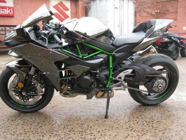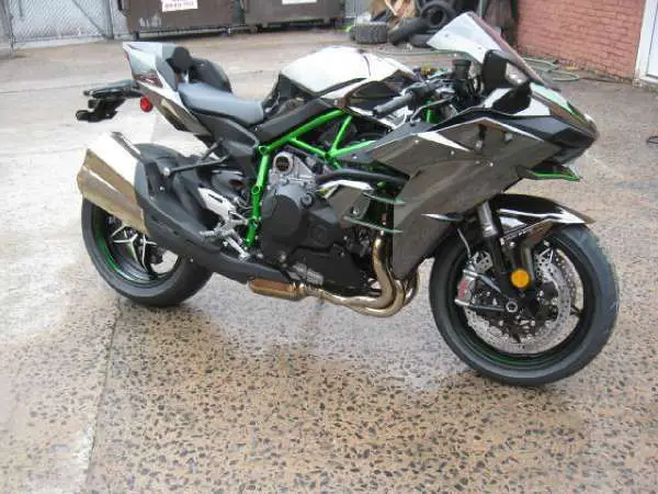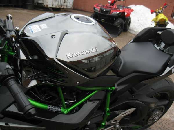2015 Kawasaki Ninja H2 (203) 599-4243 ext. 198 Odometer: 1 Body Style: Sportbike Transmission: 6-speed return dog-ring Exterior Color: Black Stock #: 4180235 Length: 7 Width / Height / Weight: 3 / 4 / 525 New Haven Powersports Address: 143 Whalley AvenueNew Haven. CT 06511 Contact: New Haven Powersports Phone: (203) 599-4243 ext. 198 Fax: 2035621813 Email: chris@nhpowersports. com CONTACT DEALERSHIP APPLY FOR FINANCING VIEW DEALERSHIP SHOWROOM Vehicle Overview Rare Opportunity to Purchase Limited Production Brand new with Zero Miles Supercharged 1000cc with 210hp Comes with 1 year warranty. Extended warranty available? for purchase Shipping to all 48 states available Call Dan at 203-562-3900 for more info ? ? KAWASAKI TRACTION CONTROL (KTRC) Whereas many competitive traction control systems react towheel-slip. this enhanced version of KTRC uses complex analysis to help preventwheel-slip. The new KTRC system features three modes. each consistingof three programmable levels. /p> allowing riders to choose how heavily each mode intervenesduring riding. Modes 1 and 2 are tailored for maximum acceleration andperformance. while mode 3 is optimized for rainy conditions. The system can also beturned off completely KAWASAKI LAUNCH CONTROL MODE (KLCM) 3-mode KLCM provides unmatchable acceleration from a stopby electronically controlling engine output to minimize rear wheel-slip and front endlift. Launch Control Mode allows the rider to launch from a stopwith the throttle held wide open. ??HLINS ELECTRONIC STEERING DAMPER The ??hlins electronic steering damper adjusts dampingbased on a number of inputs. At lower speeds. damping is lessened. As speed increases. teering damping increases for optimal performance. LED ILLUMINATION LED headlamps evoke the image of a predator???s fangs. whilea red LED taillamp and indicators paint the mirror coated black seat a devilishhue. A full LED display features a host of information such asa digital speedometer. /p> gear indicator. boost indicator. fuel consumption. odometerand more. The needle of the tachometer sits against black until itstarts to move. Then. the backlit numbers chase the needle as it rises Engine Liquid-cooled. 4-stroke in-line four Displacement 998cc Bore x Stroke 76. 0 x 55. 0mm Compression ratio 8. 5:1 Fuel System DFI?® 50mm throttle bodies x 4 with dual injection Intake System Kawasaki supercharger Ignition Digital Transmission 6-speed. return. dog-ring Final Drive Chain Performance Front Suspension / Wheel Travel 43mm inverted fork with rebound and compression damping. spring preload adjustability and top-out springs / 4. 7 in Rear Suspension / Wheel Travel NEW Uni-Trak?® with gas-charged shock. piggyback reservoir. dual-range (high/low speed) compression damping. rebound damping and preload adjustability. and top-out spring / 5. 3 in Front Tire 120/70 ZR17 M/C (58W) Rear Tire 200/55 ZR17 M/C (78W) Front Brakes Dual radial-mount. opposed 4-piston calipers. dual semi-floating 330mm discs. KIBS ABS Rear Brakes Opposed 2-piston calipers. single 250mm disc. KIBS ABS Cooling System Water-cooled Details Frame Type Trellis. high-tensile steel. with swingarm mounting plate Rake/Trail 24. 5 degrees / 4. 1 in Overall Length 82. 1 in Overall Width 30. 3 in Overall Height 44. 3 in Ground Clearance 5. 1 in Seat Height 32. 5 in Lubrication Forced lubrication. wet sump with oil cooler Curb Weight 524. 8 lb** Fuel Capacity 4. 5 gal Wheelbase 57. 3 in Color Choices Mirror Coated Black Warranty 12 month Limited Warranty Kawasaki Protection Plus??? (optional) 12. 24. 36 or 48 months Dealership Features Warranty Terms of Sale Disclaimer Vehicle Features Warranty Representations and Warranties made by seller:? Manufacturers warranties may still apply. Extended warranty may be available. There are absolutely NO representations or warranties are made by seller. nor are any representations or warranties relied upon by bidders in making bids. We take pride in selling high quality machines. but keep in mind you are winning the vehicle. not the right to decide if you want it. ? *Taxes and Registration fees: Out of state buyers are responsible for all state. county. city taxes and fees. as well as title service fees in the state that the vehicle will be registered. All taxes and fees must be paid in full in order for vehicle to be titled and registered. See your state laws. Title Information: All New vehicles come with a manufacture title. pre owned will? have a clear title. we do NOT sell salvage titled vehicles. If payment is made by cashier's or personal checks we hold all titles for a minimum of 10 days or until funds have cleared. Shipping Terms of Sale This vehicle is also for sale on our lot and other advertising sources. we reserve the right to end this listing at anytime should the vehicle no longer be available for sale. The following terms of sale apply to all of our auctions. Payment Terms: New Haven Powersports reserves the right to. and verify the registered information of all users who bid on this auction. Cancel any and all bids at our discretion. or end the auction early. Bidders: If you are new to online auctions. please read the guide for buyers. Please only bid if you truly want to own one of our fine motorcycles. A Winning Bid enters you into a Legal and Binding contract. If you have questions or concerns. please address them before bidding. We reserve the right to decline or cancel any bids from bidders with excessive negative feedback. The time to decide. determine. and evaluate is during the auction. Please call or e-mail us if you have any questions. However. the conclusion of the auction is the time to pay! Being the high bidder doesn't mean you've beenawarded the opportunity to "think about it" or to "come up with the funds". It means you have entered a binding agreement to purchase this item immediately following the conclusion of the auction AND that you have thefunds to do so. Bidding on eBay auctions is easy and fun--but it is also seri