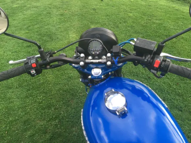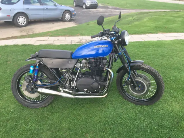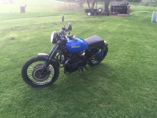 Up for sale is a 1976 Kz750B twin. I bought it last year with 12000 miles on it running. It has alot of work done to it so ill start off with good and bad. and a list of parts. Please read whole description before asking questions. I'll start off with the bad. the cam end plug on left front of motor seaps oil. i say seap because it doesnt leak out but after running motor i can see it get wet and next day small wet spot on ground. I put a new gasket and silicon on end plugs but it did not work. Next is the smaller sprocket i put on hits the swingarm. it can be fixed by putting a regular chain guide off a dirtbike on it. And third is the wiring had to be completely redone. my Dad did all the wiring. and we installed a secret switch for the ignition. Oh and the tank has small dent on left side. barely noticable. Now for the good. everything has been painted. powdercoated. or polished. Some of the stuff i polished rusted a little over the winter. Brand new tires front rear. brand new Brakes front rear(dual disc on front). new bearings front rear stearing head. Motor runs good. tramission shifts all gear. starter and kick start work. clutch works good. Rims. Hubs. and Triple trees have been powder coated. the rims arent perfect because they didnt fit completely in stove. I'll try to list as much as possible. Parts:Homemade Seat. Homemade Side Covers. Homemade rear fender. homemade battery holder and wiring mount. Renthal Bars. Scorpion Grips. Acewell Speedometer. 15mm Master Cyclander. New SwitchesGpz Turbo front calipers. dual disk. SS breaded brake lines front and rear. with new brake pads and speed bleedersMac 2-1 exhaust with cone mufflerVortex 32t sprocket. 13" rear shocks. Shinko 244 tires54mm pod filters. Carbs rejetted with #50 pilot and #130 mainNew points. Dyna Ignition Booster. Aftermarket horn. SS engine Bolt KitNew spokes and nipples front and back. Aftermarket Monza style Tank CapUsb 2 port on handlebarsI do not have the origanal parts. I have an extra oil filter and rear brake pad. I bought it with little over 12. 00 miles on it and have put 200 on since the build. Message me with any questions Thanks for looking Mike. $500 Deposit within 48 hrs of aution end. Remaining Balance Paid in Cash or Money Order. Buyer Responsible for Pickup or Shipping. Title clear and in hand.