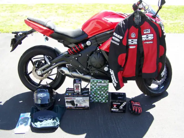 o Pinlock Fog Resistant Insert Lens (smoke)o All Black HJC CL-16 Helmet (Med) with carry bago Red and black Speed and Strength (XL) Rider's Jacketo Red and Black Iicon Rider's Gloveso Falcon Defender 2000 Motorcycle Cover (new)o NOCO Genius G750 Charger (new)o Yuasa YT12A-BS 12V Battery (New) replaced on 4/19/2014o 2013 Kawasaki Genuine Accessories Guide